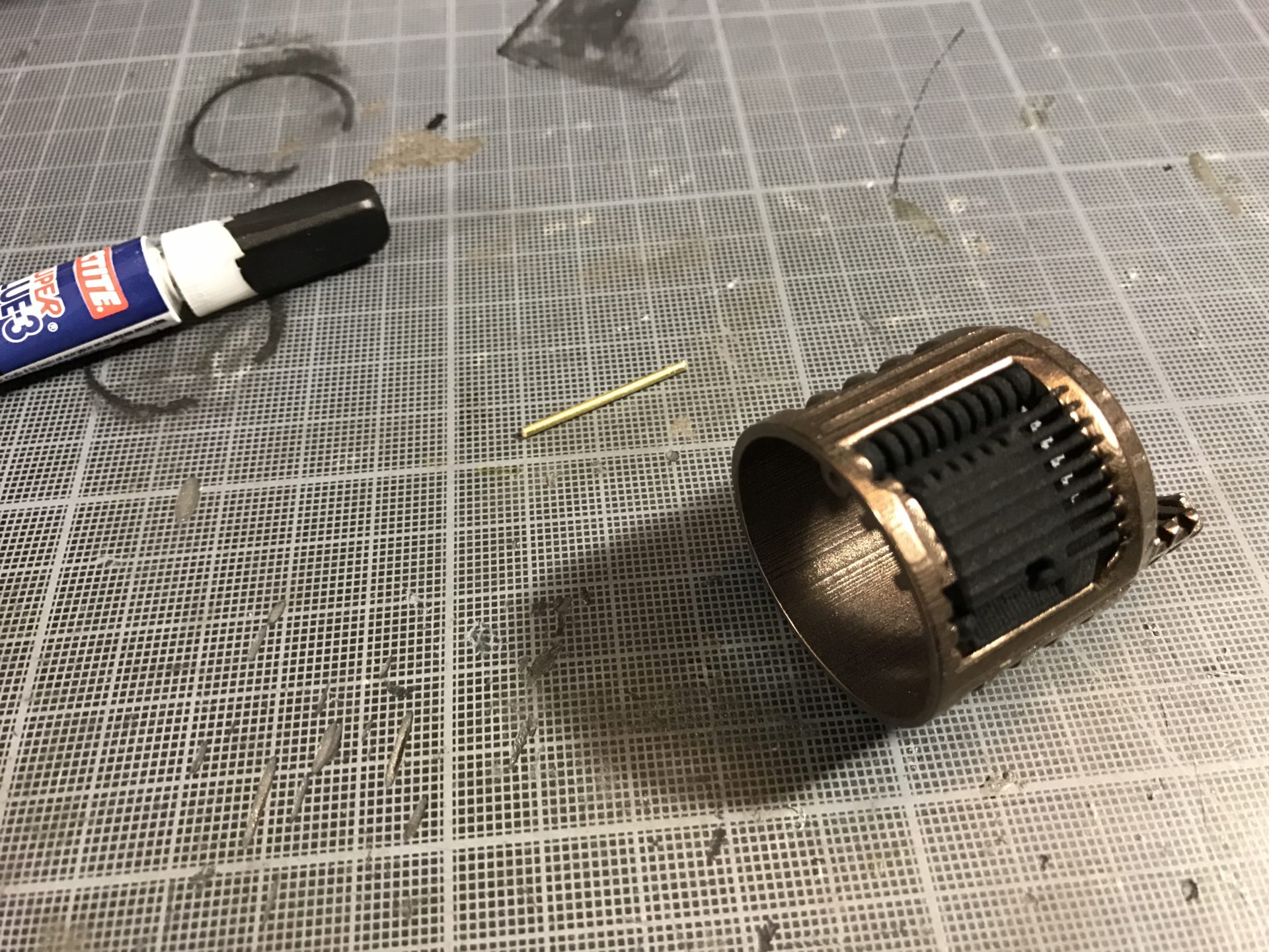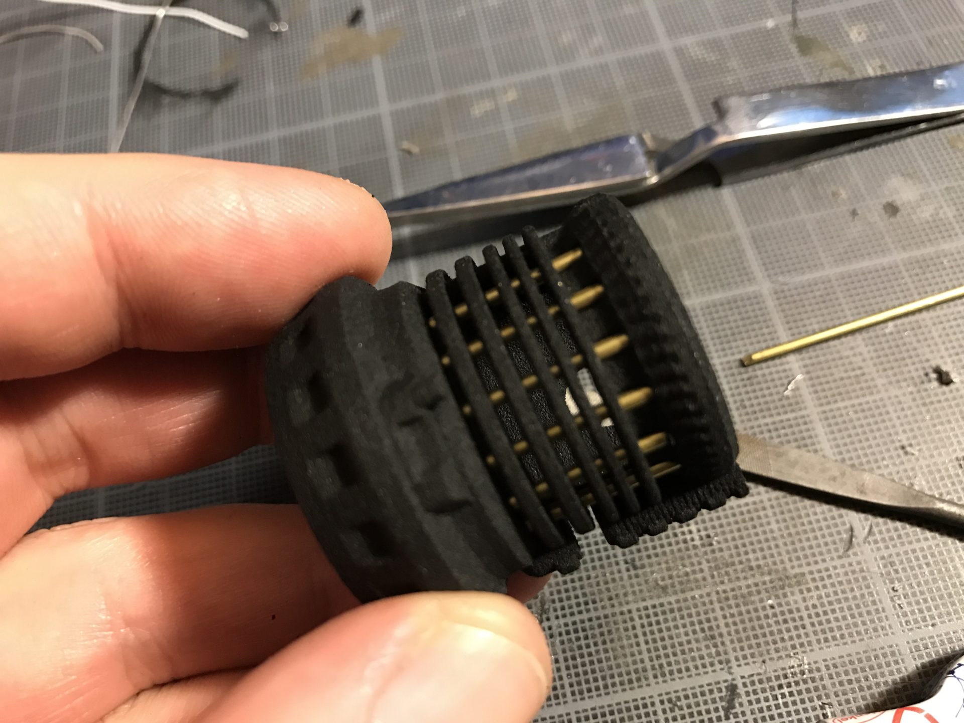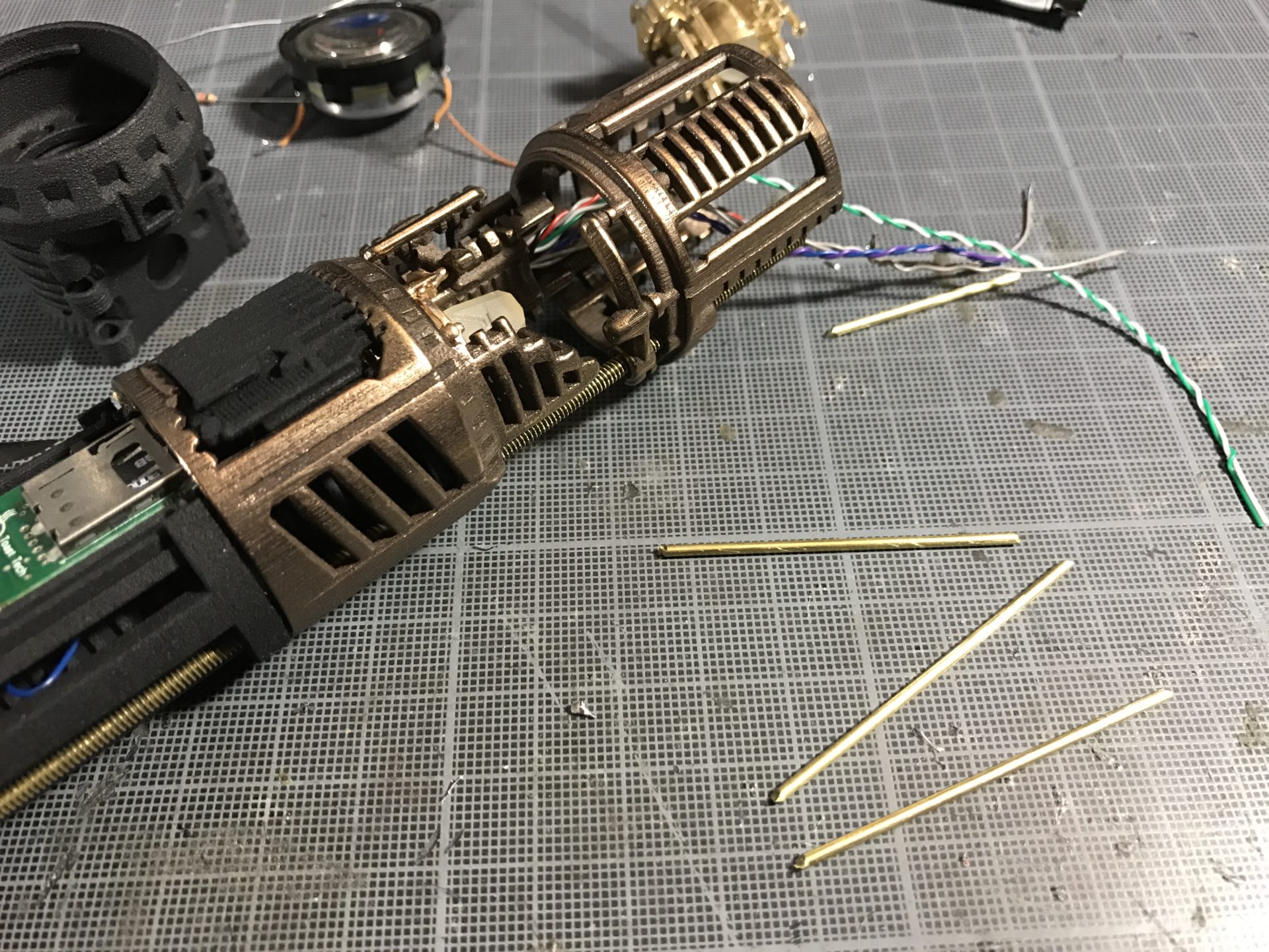 Step 12- Add the 1.5mm OD rods to the speaker holder module and glue them.