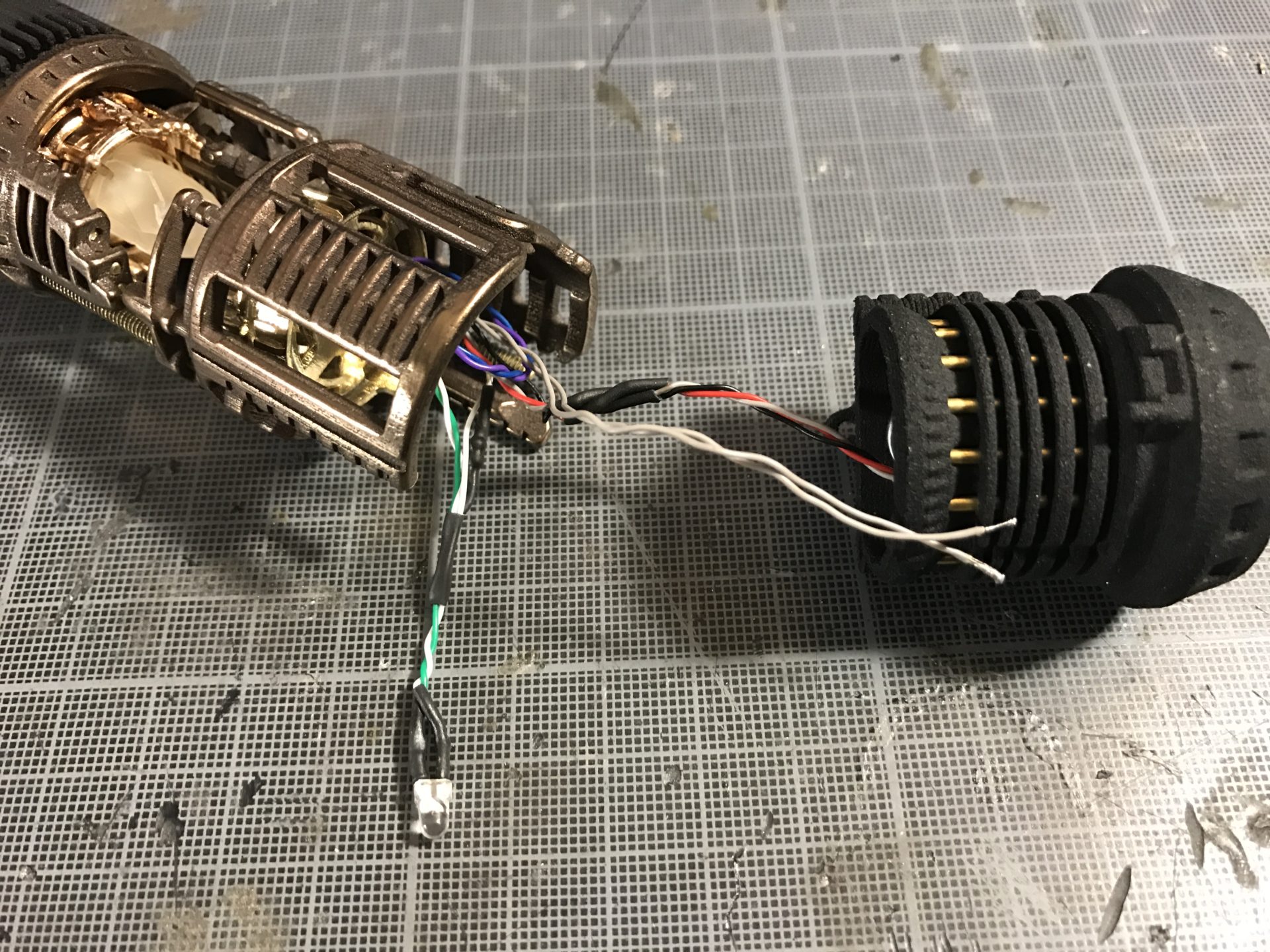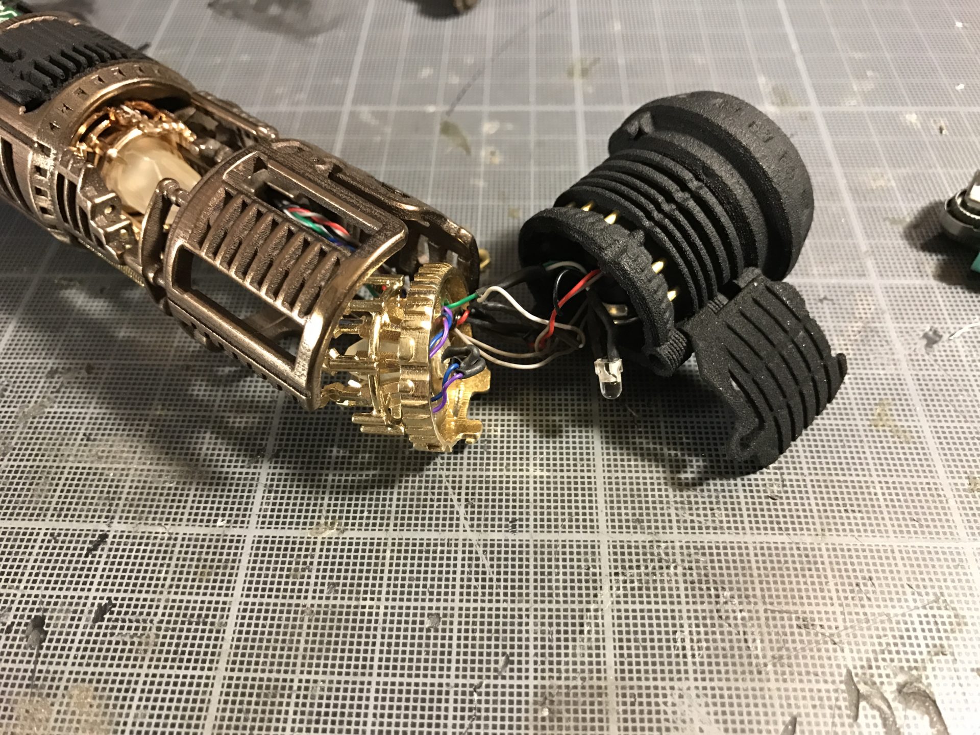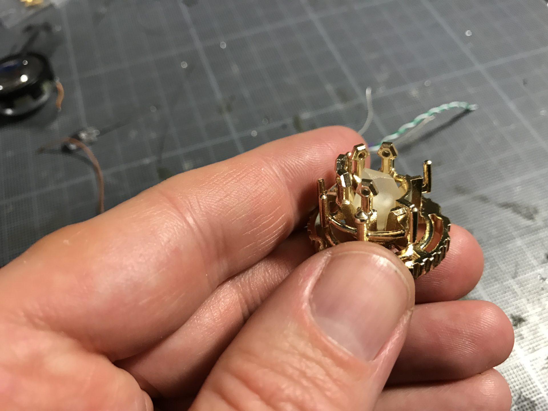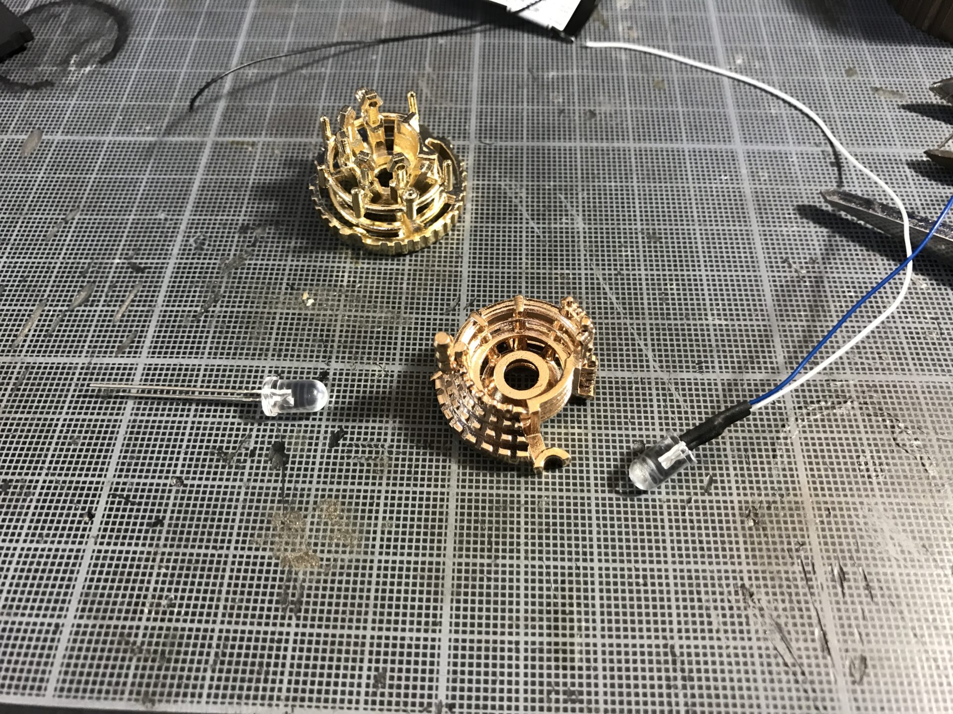 Step 13- Add the 5mm crystal chamber accent led to CC Insert 2, and wire it as shown in the picture below. Pass the other wires through the dedicated channel as well (temporarily inserted CC insert 2 into Shell 2).