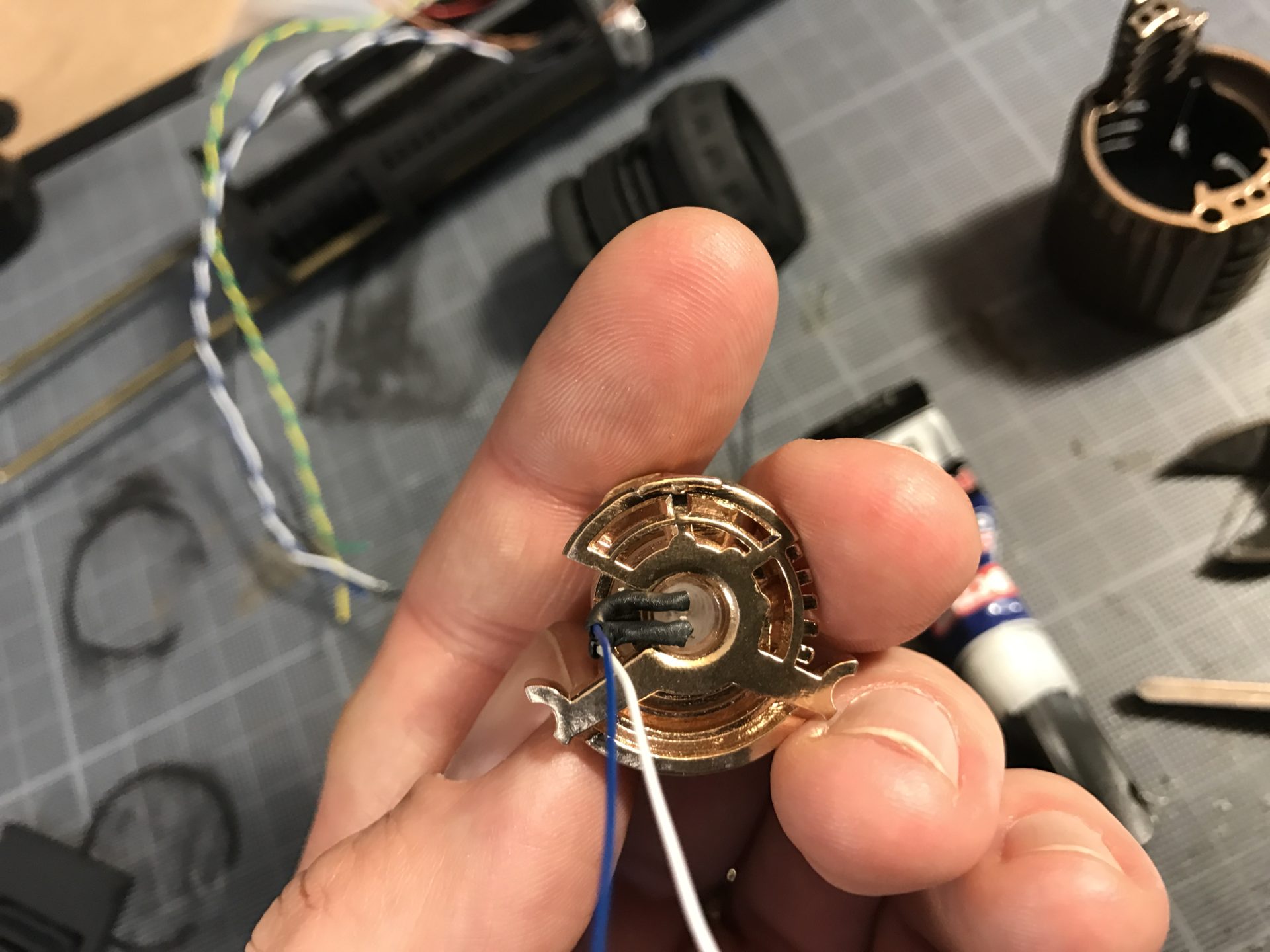 Step 18- Wire and add the speaker to the speaker module (securing the speaker with a tiny drop of super glue is recommended – make sure you have tested it).