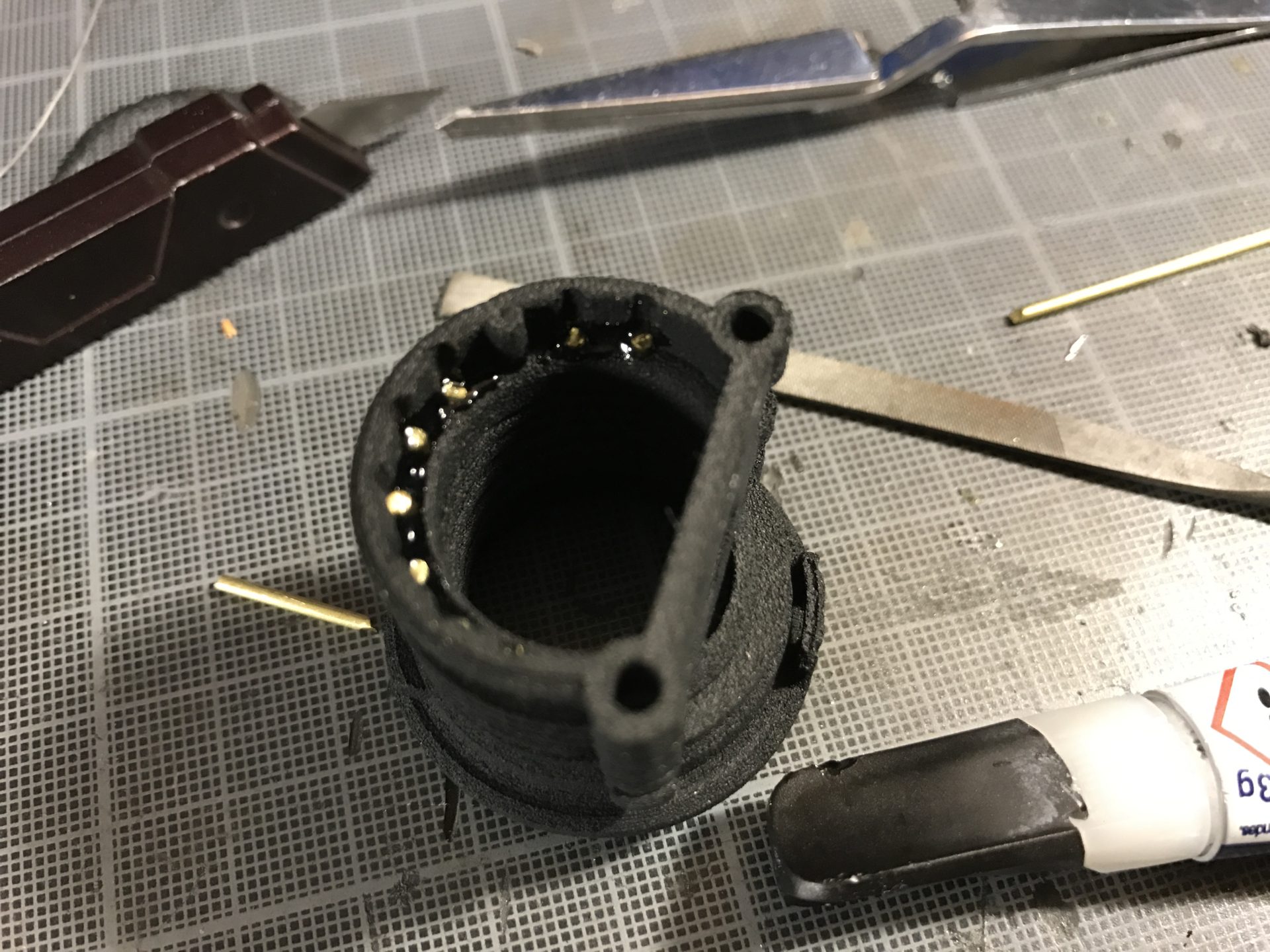 Step 15- Now take out CC insert 2 and glue it to the recharge port module, taking care everything is well aligned and centered. This will avoid any rattle.