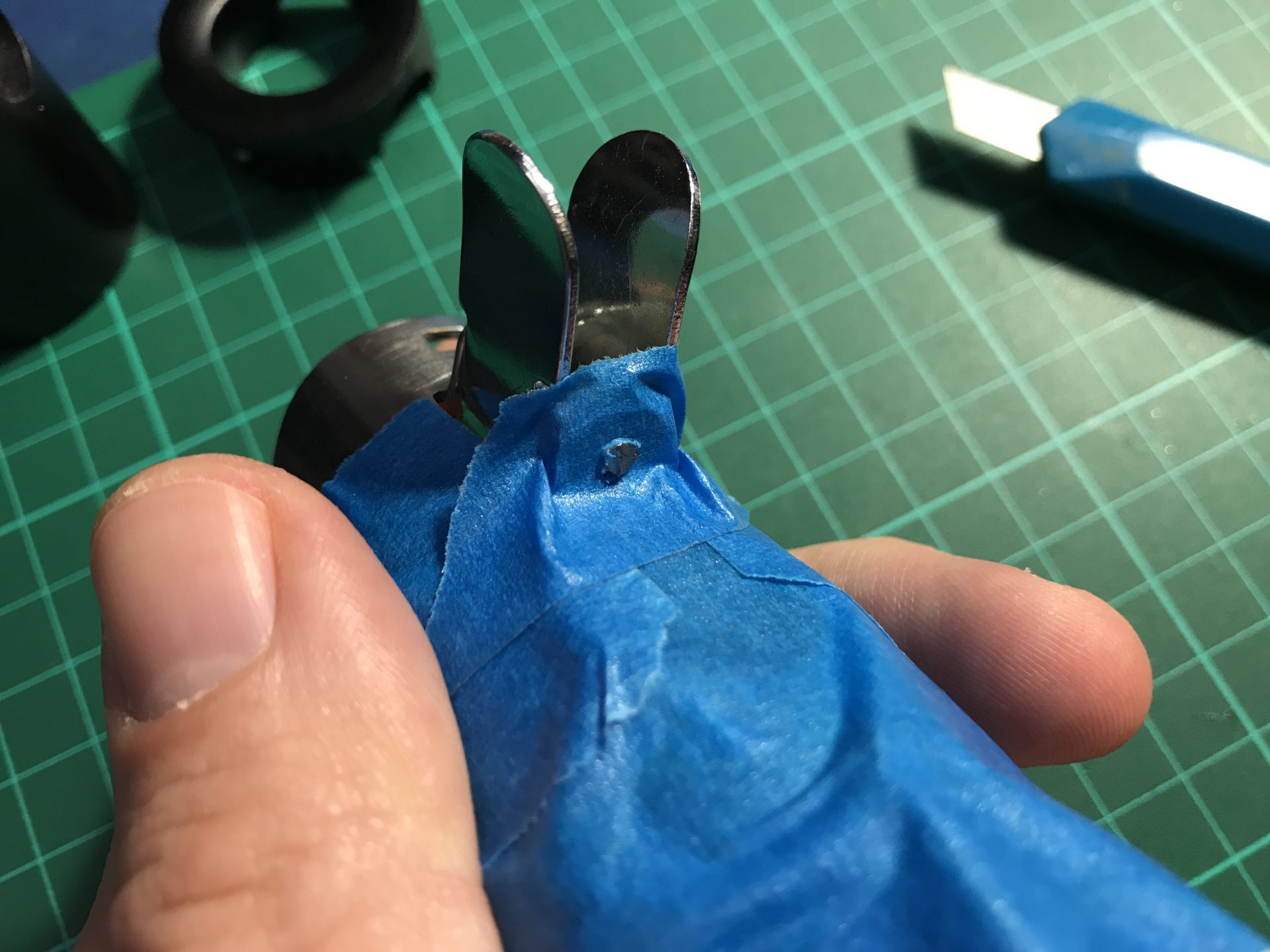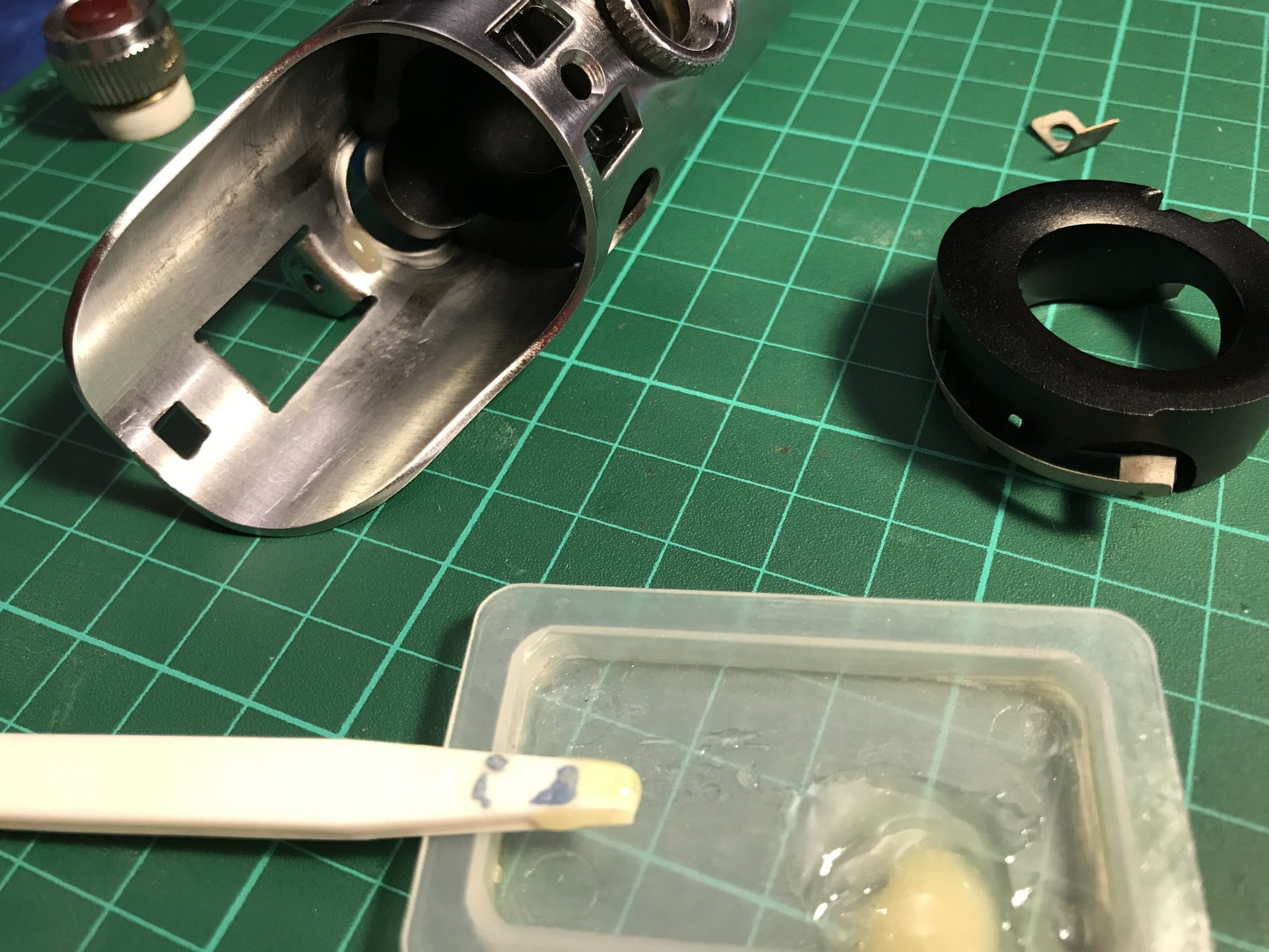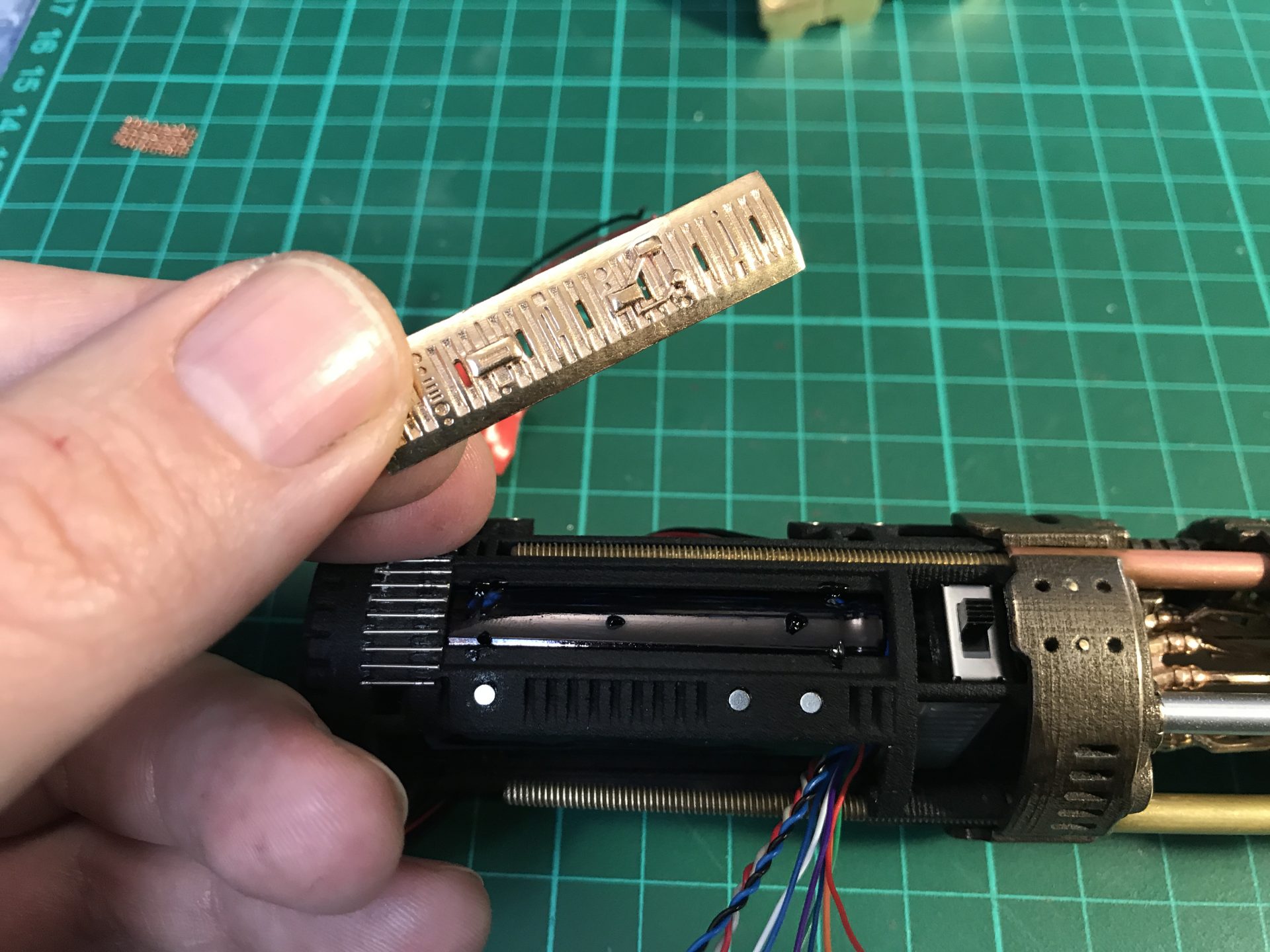 Optional: to make the upper blade holder part secure and prevent it from moving when inserting the blade, we used a bit of epoxy (carefully placed and with the excess cleaned once the part was put in place).