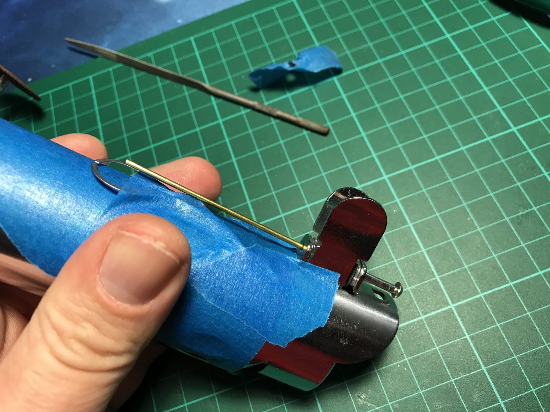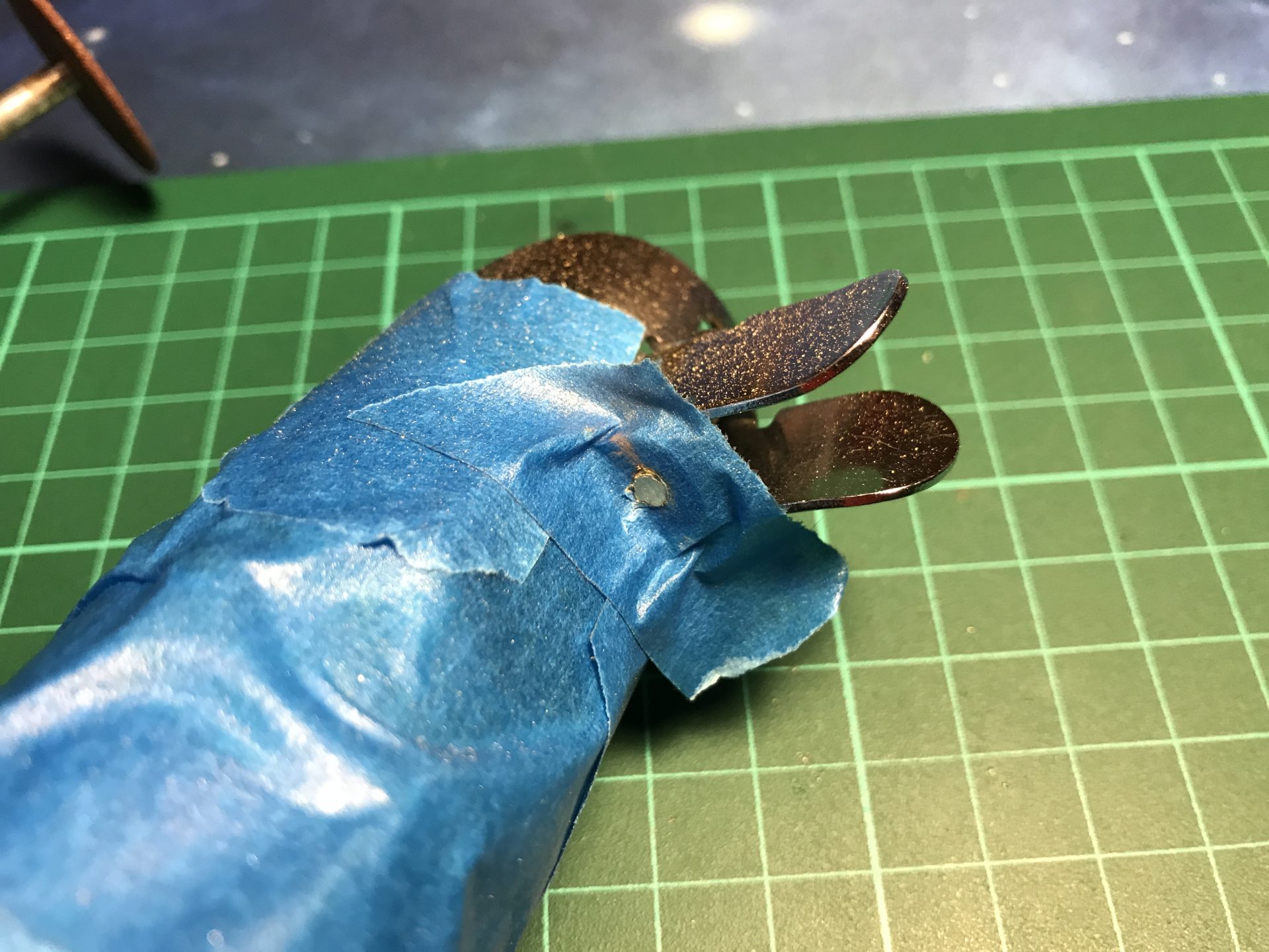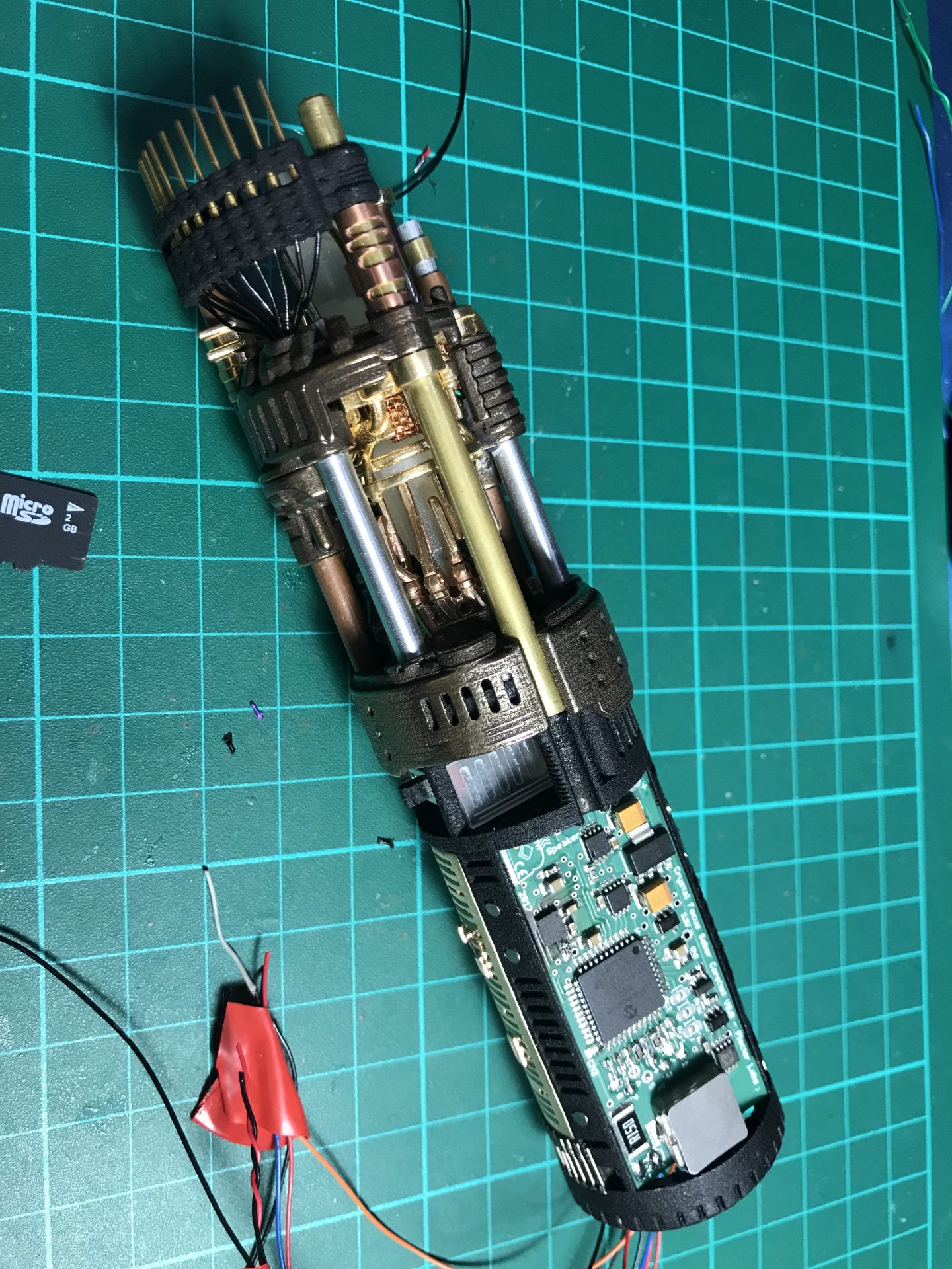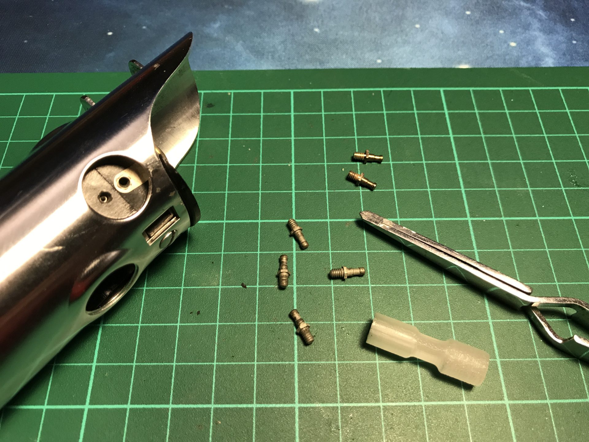 Step 4: You can also cut the electrical contact to glue them on the blade holder and add more vintage accuracy to your hilt.