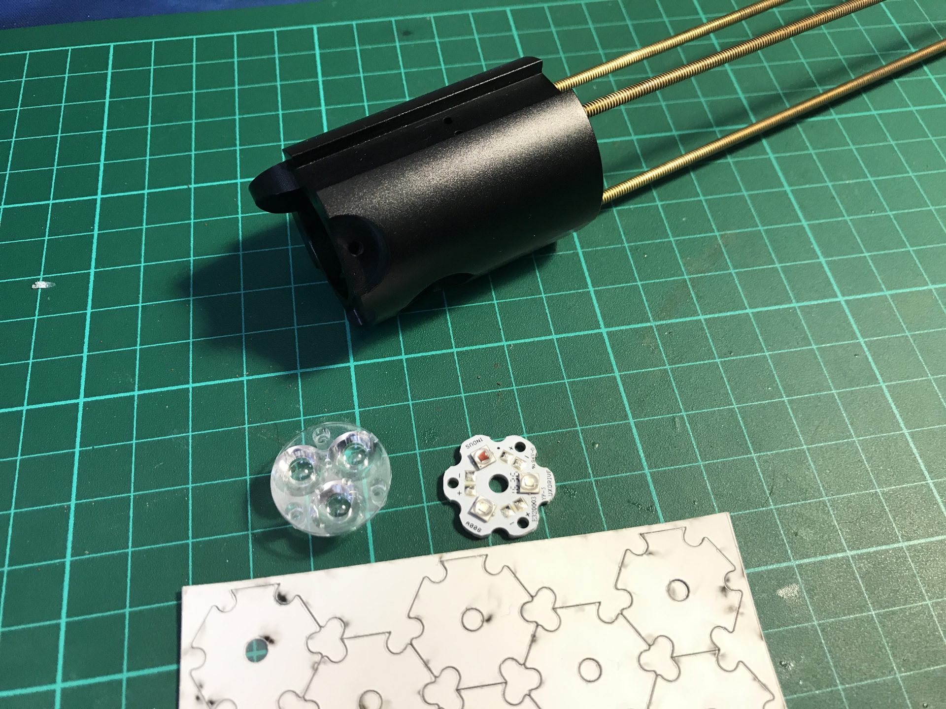 ⇒ 4-40 threaded rods x 3 (recommended in brass)