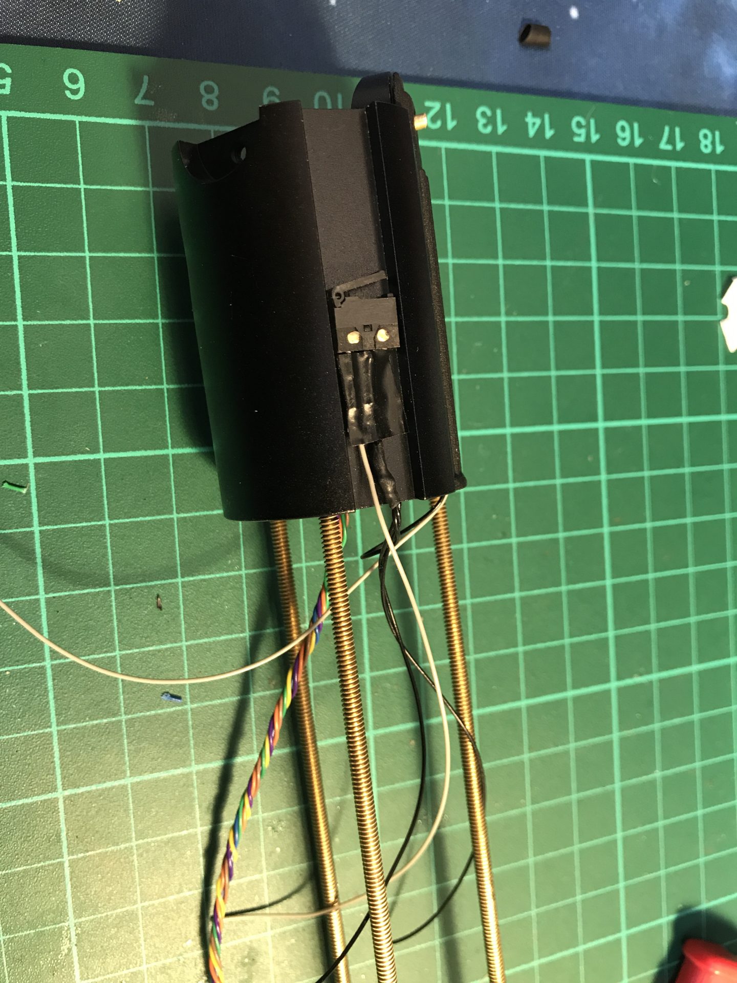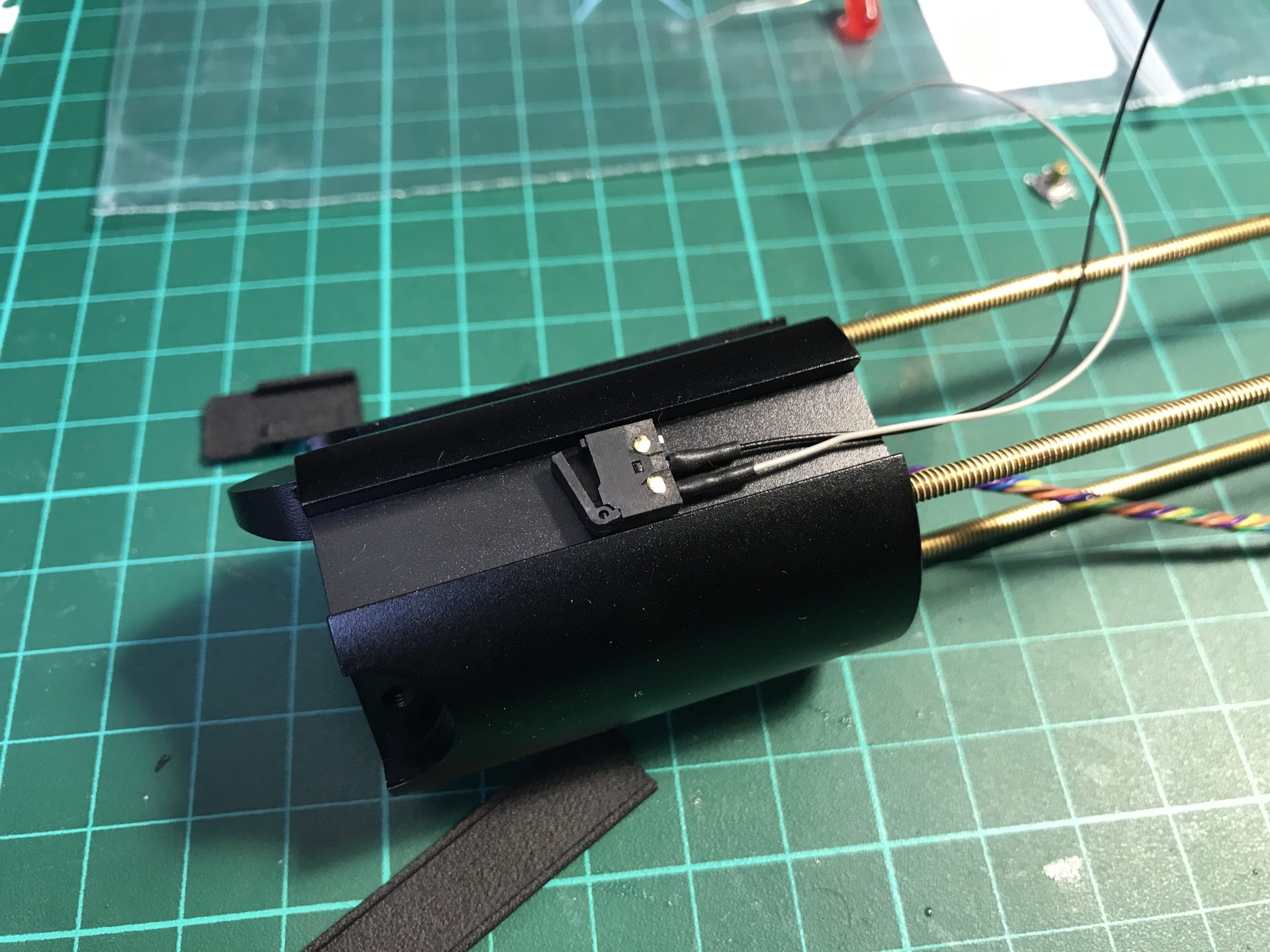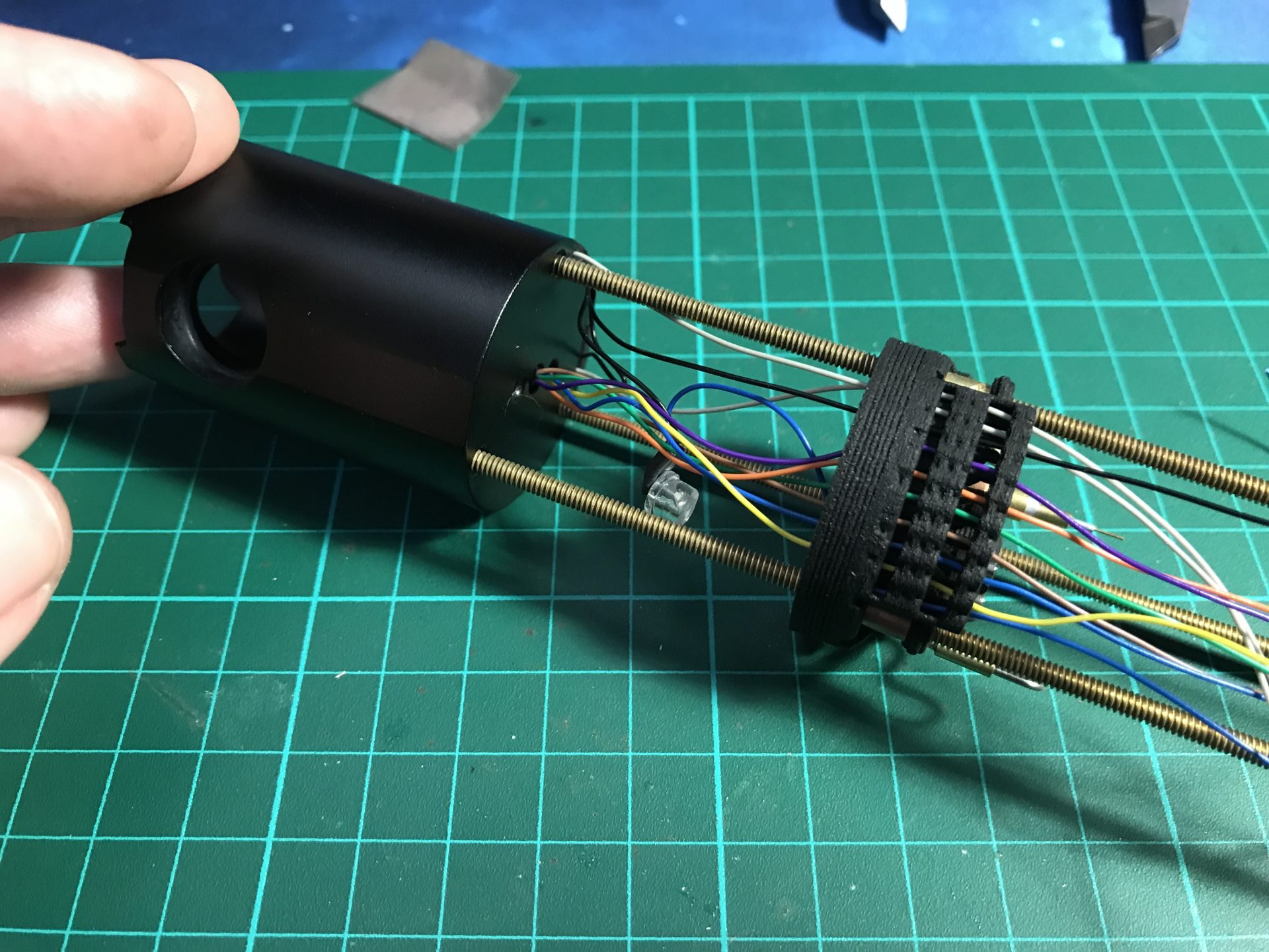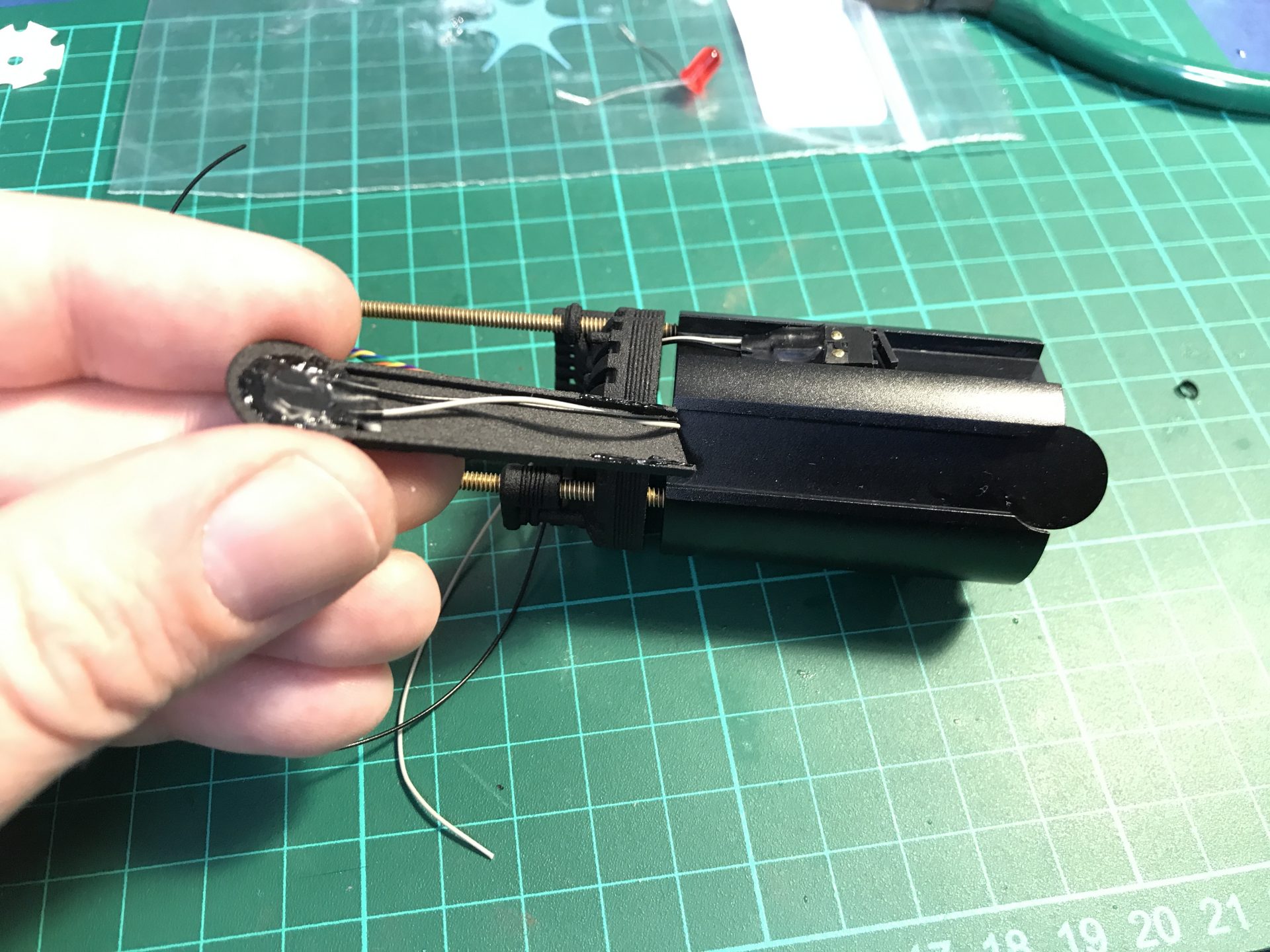Make sure no wires get in the way of the threaded rod. Then you add two Rods 5) as cosmetic.