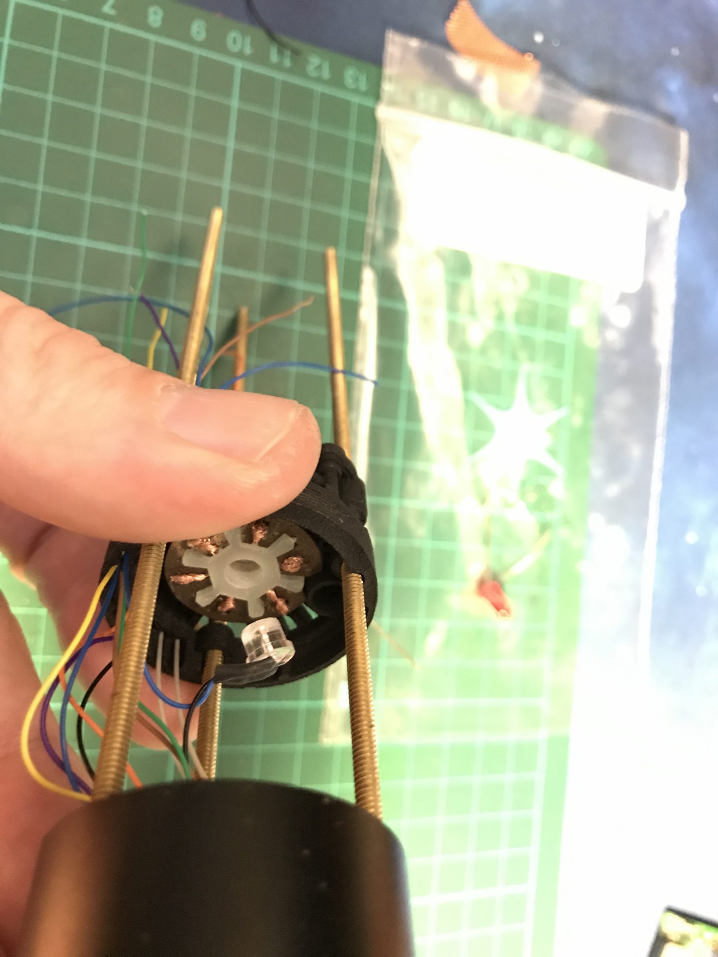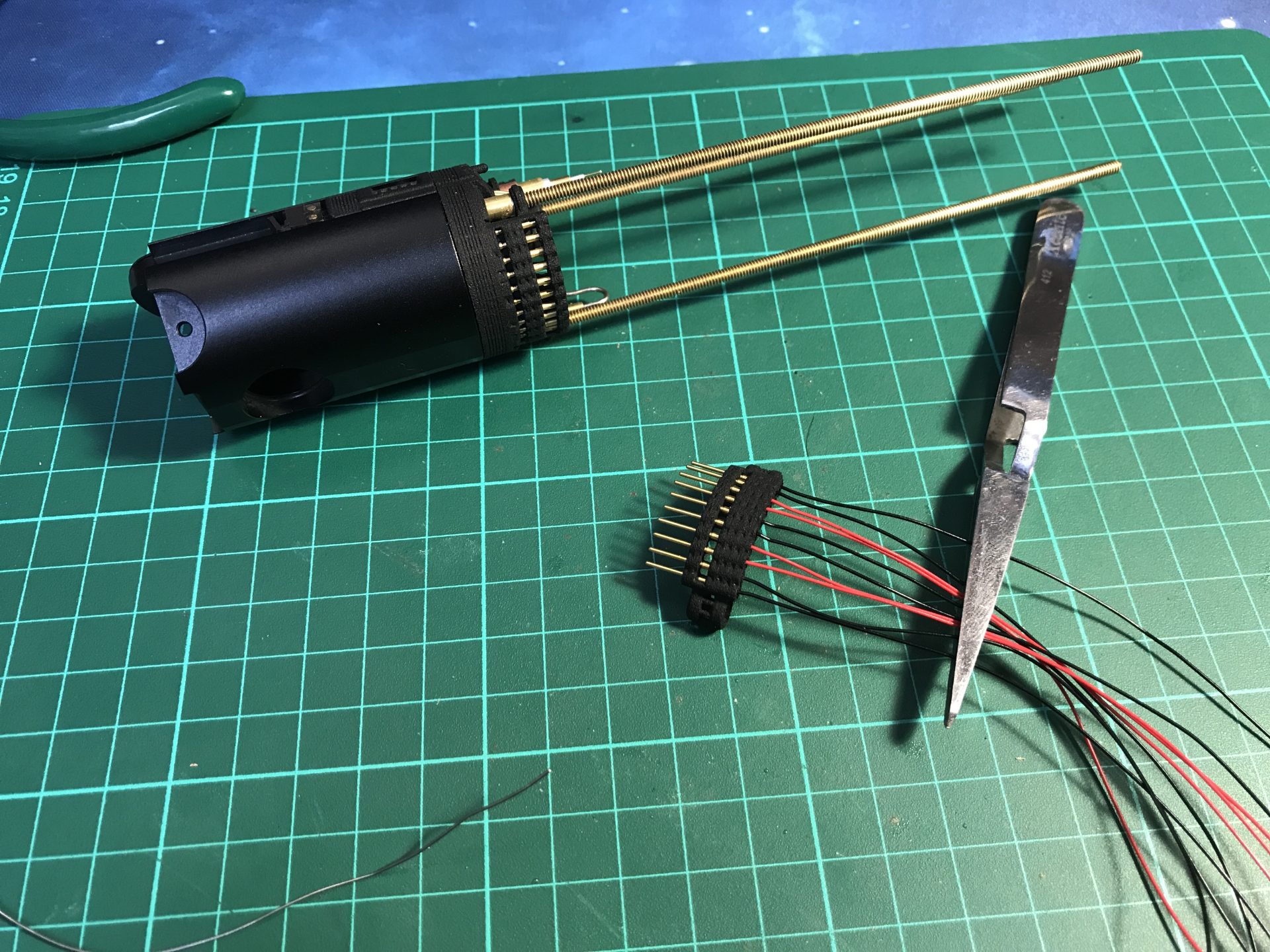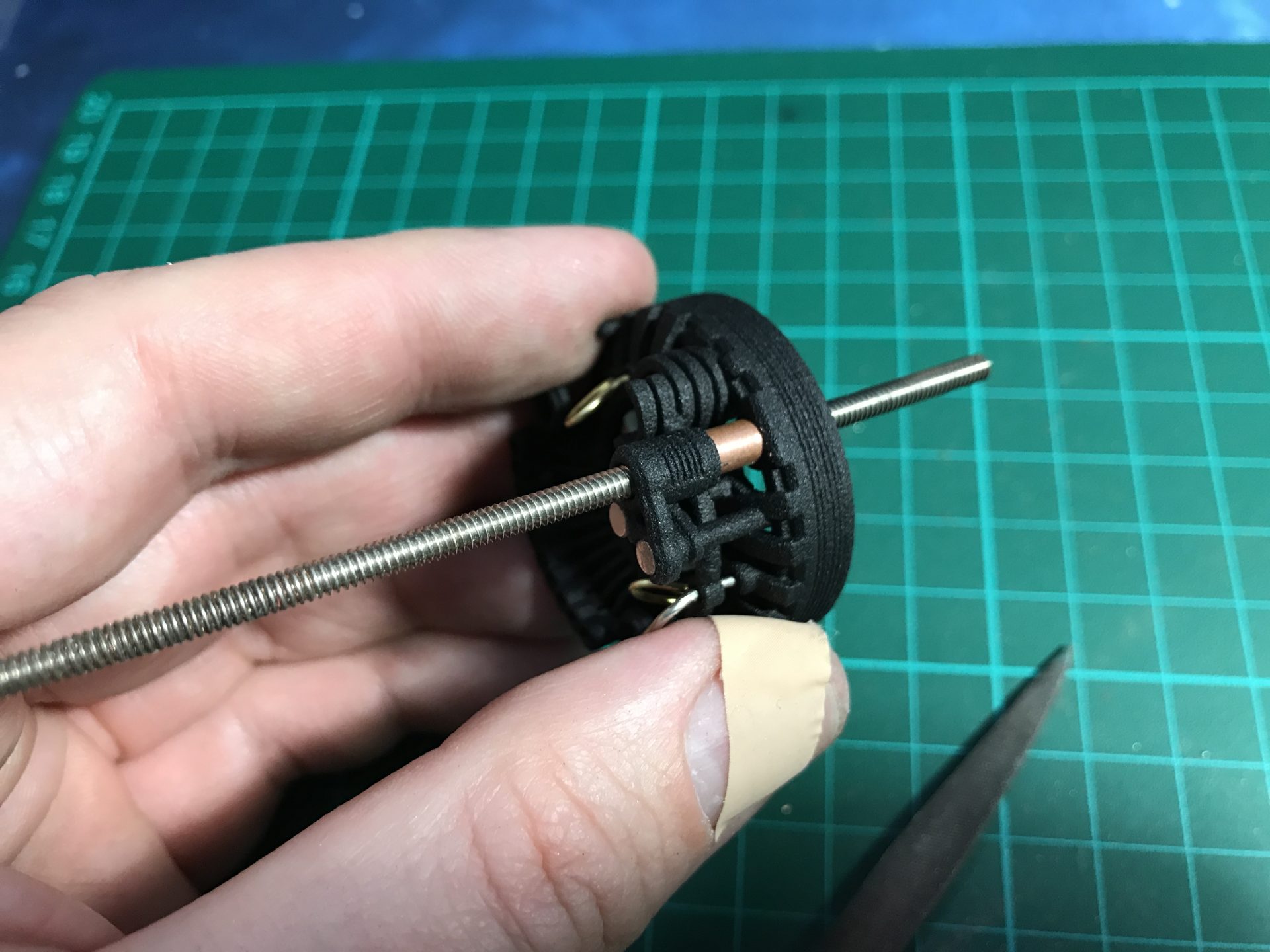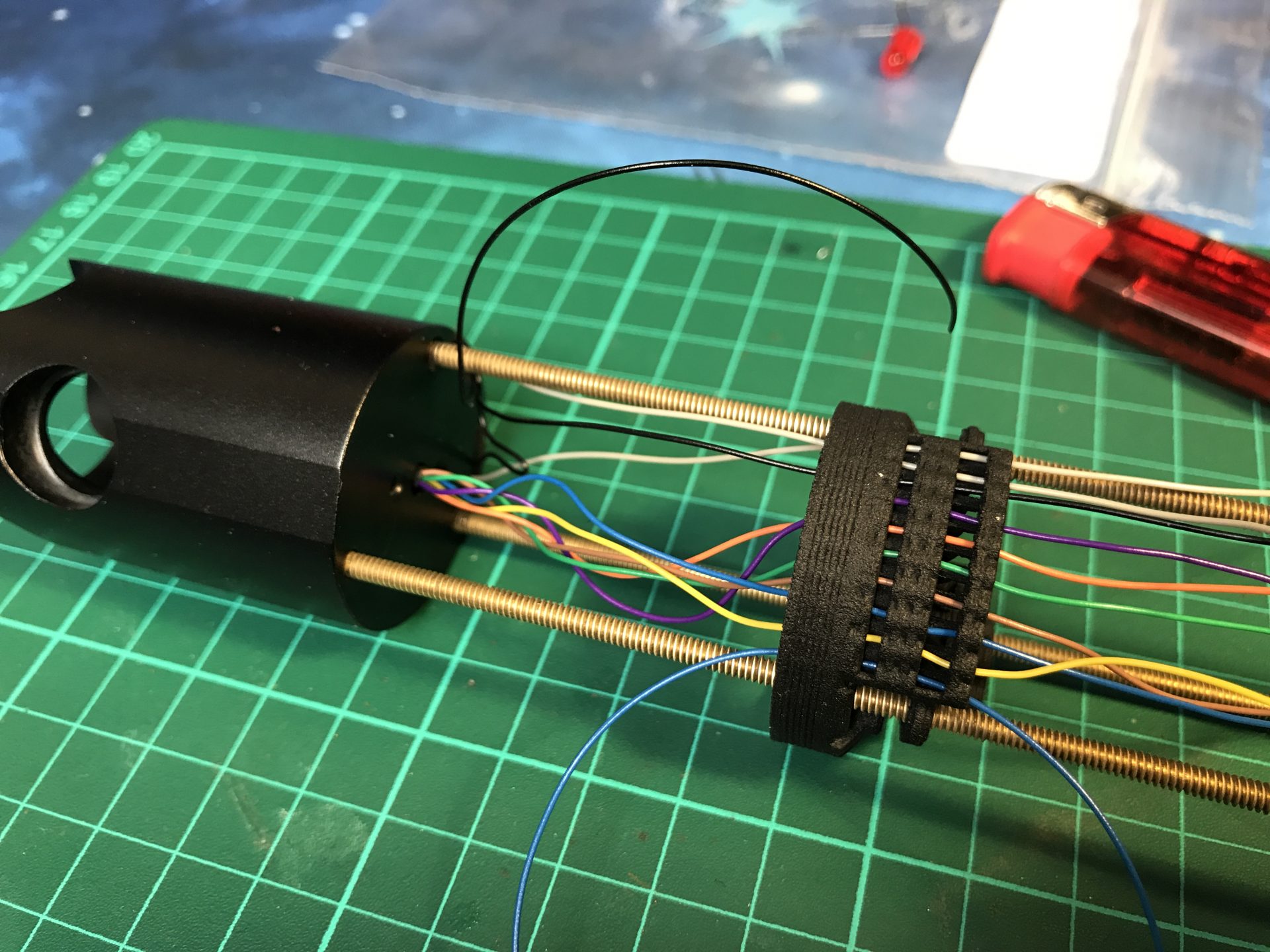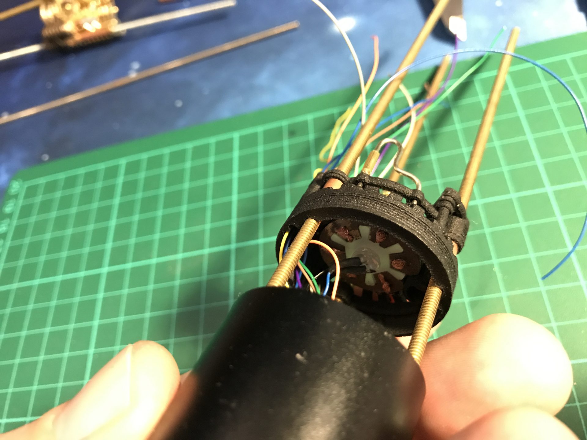 Make sure no wires get in the way of the threaded rod. Then you add two Rods 5) as cosmetic.