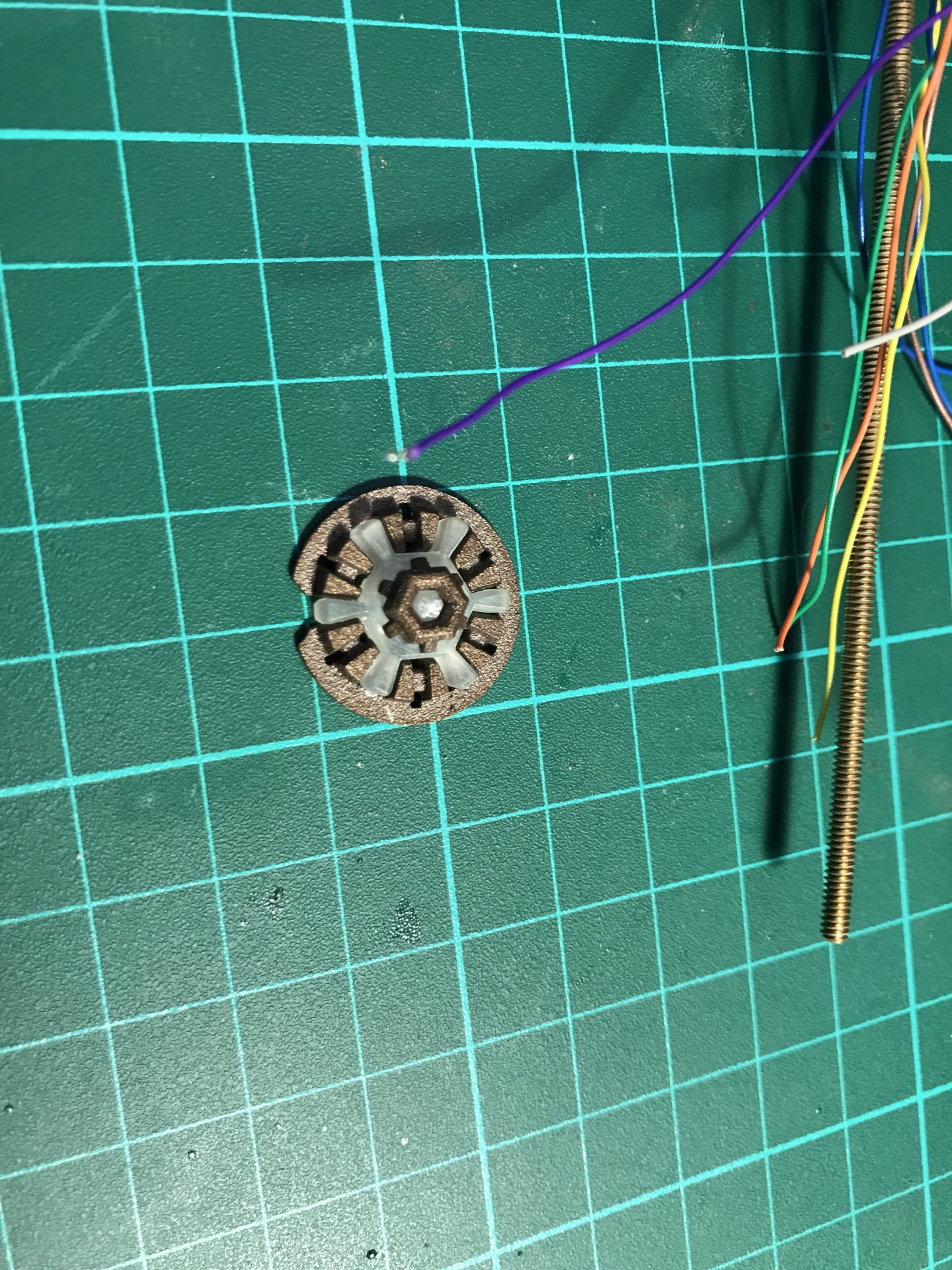 Step 24: Prepare the gear element and install (glue) the Rod 1mmOD in it. Make sure the hole in Part03 is clean and smooth (cleaning will be required if printed in steel), and add a bit of lube to reduce friction.