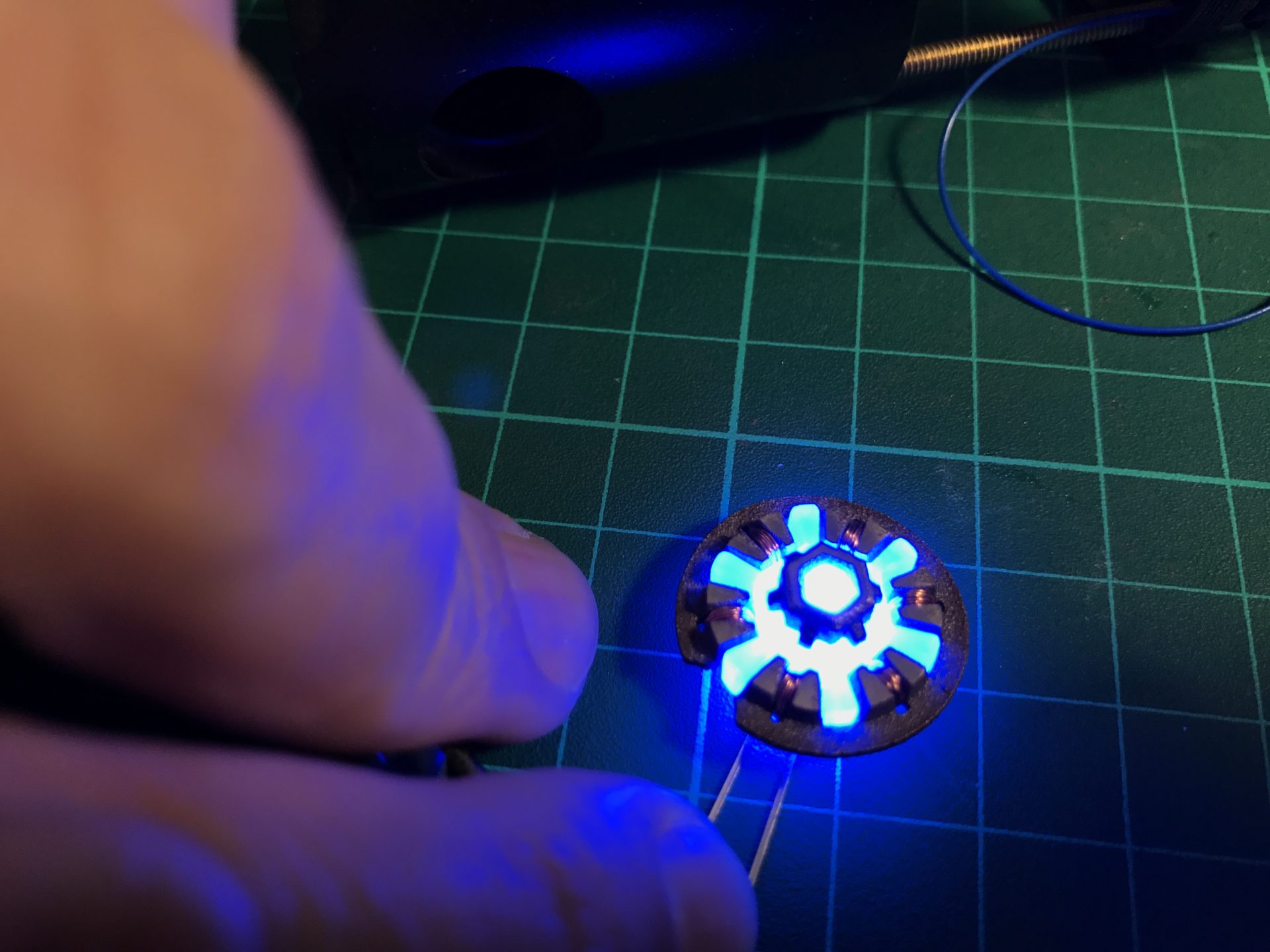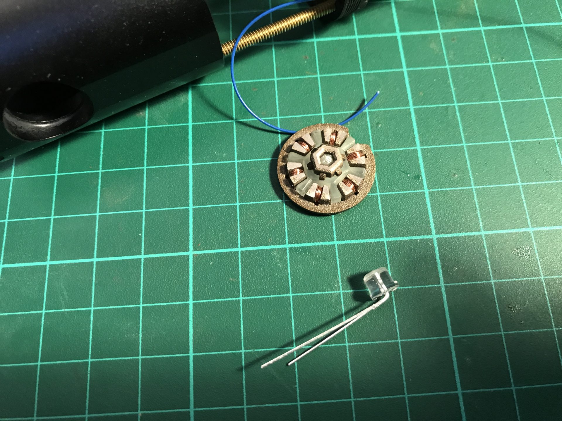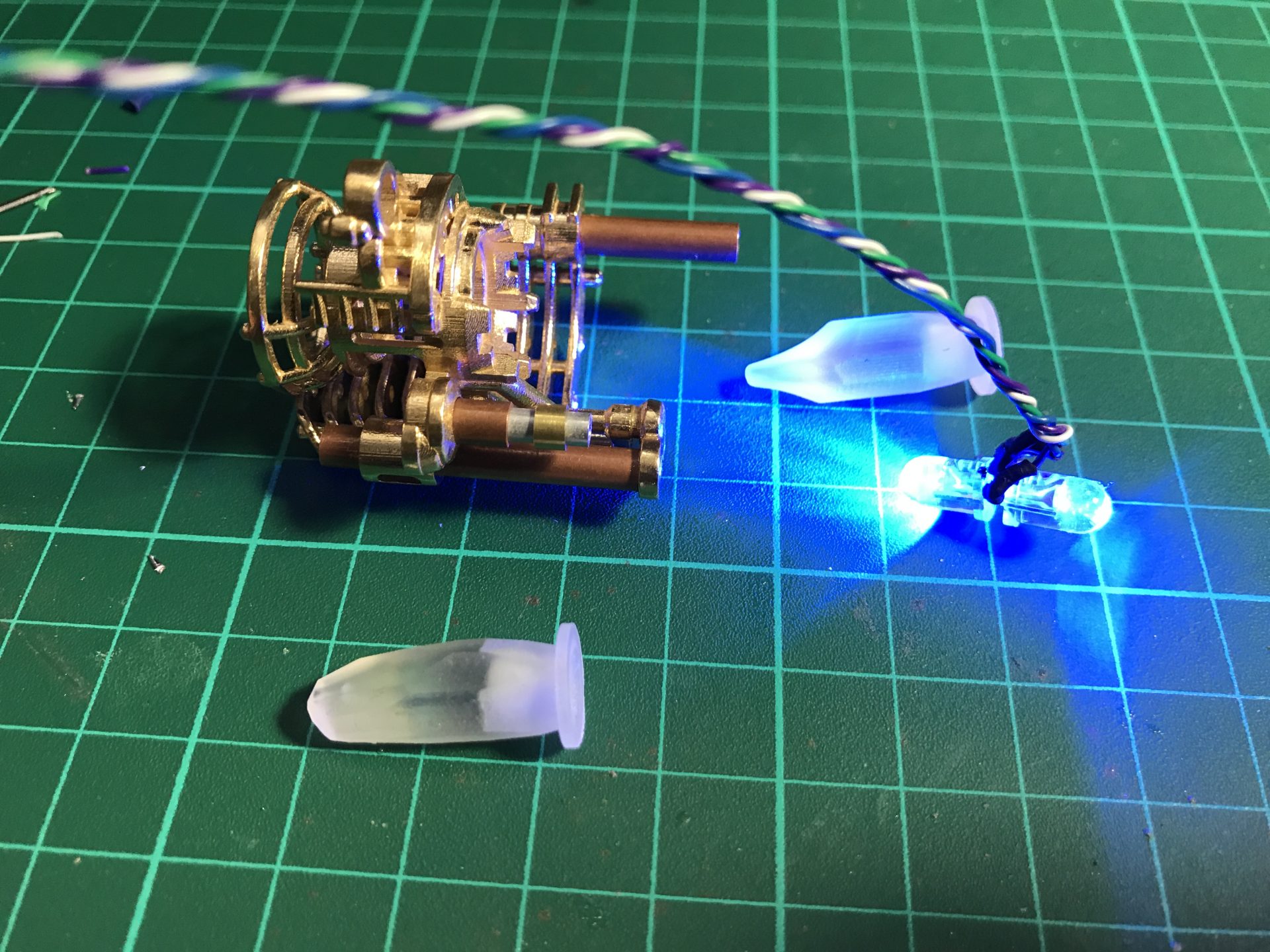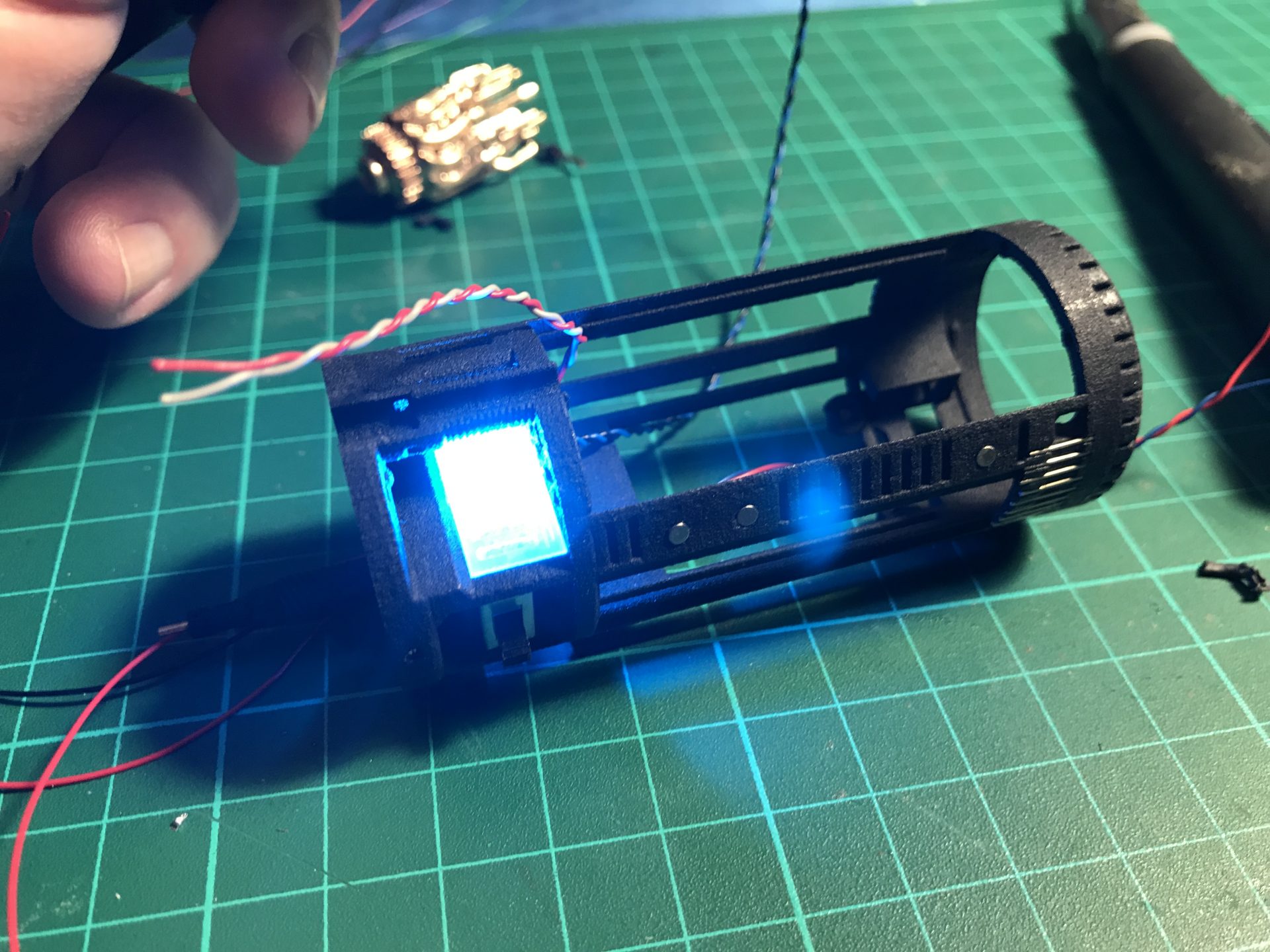 Note that the 5mm blue accent led needs to be sanded down to take less space.