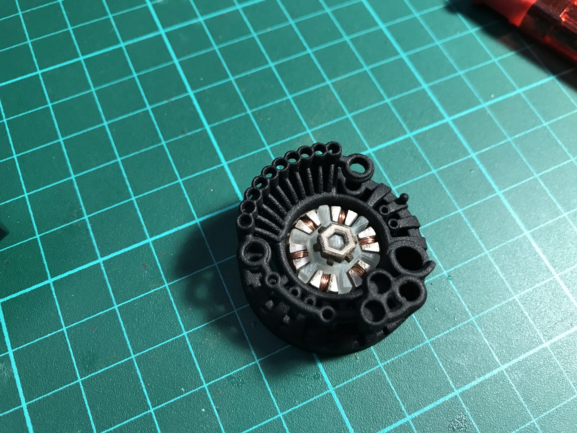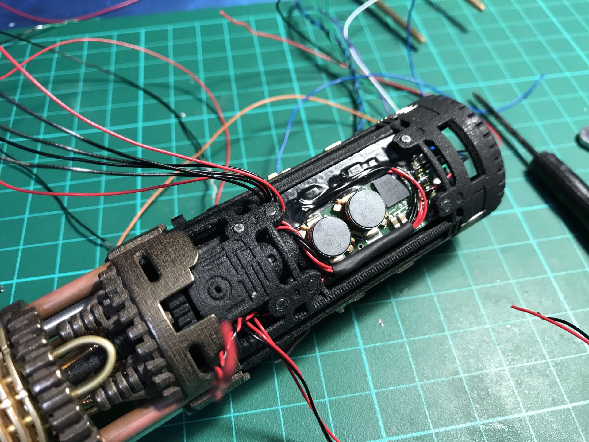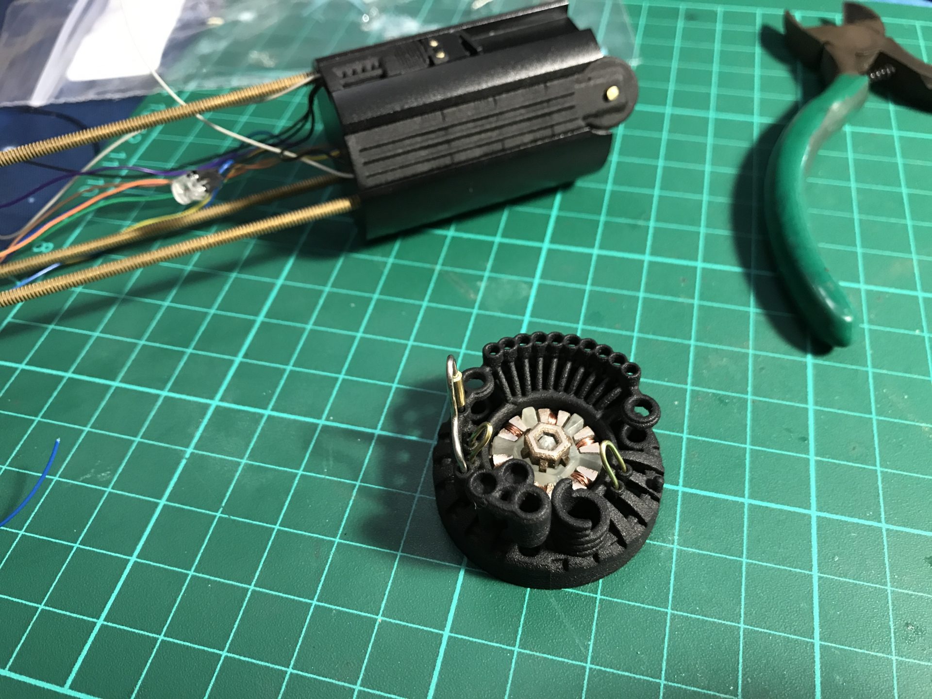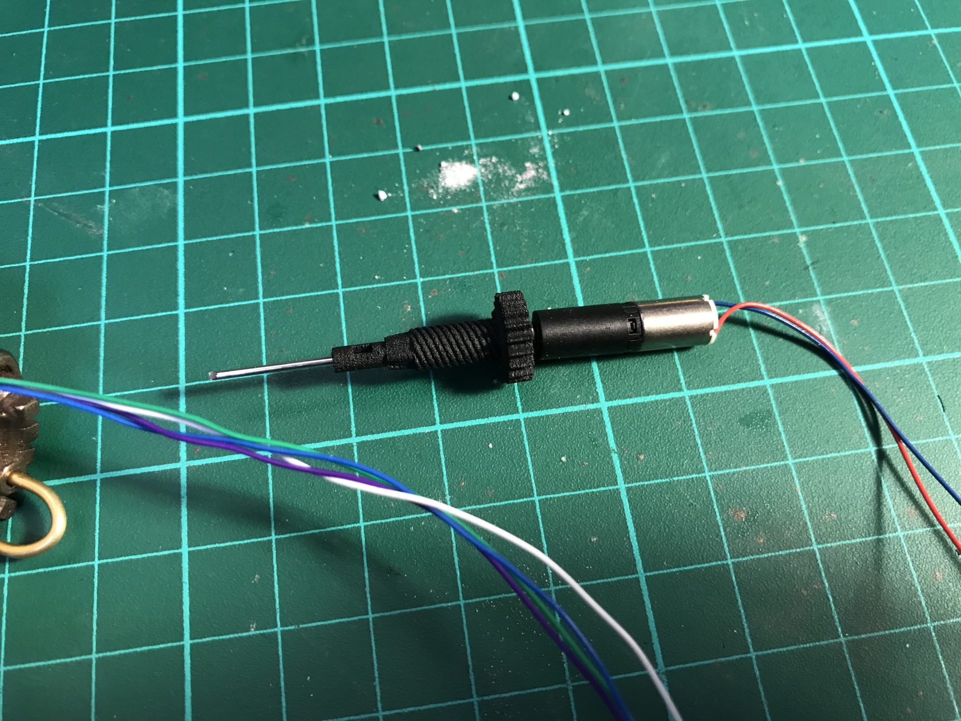 Step 33: Insert the motor into its dedicated slot and attach the gear part to it. Then add the cycling part to test.