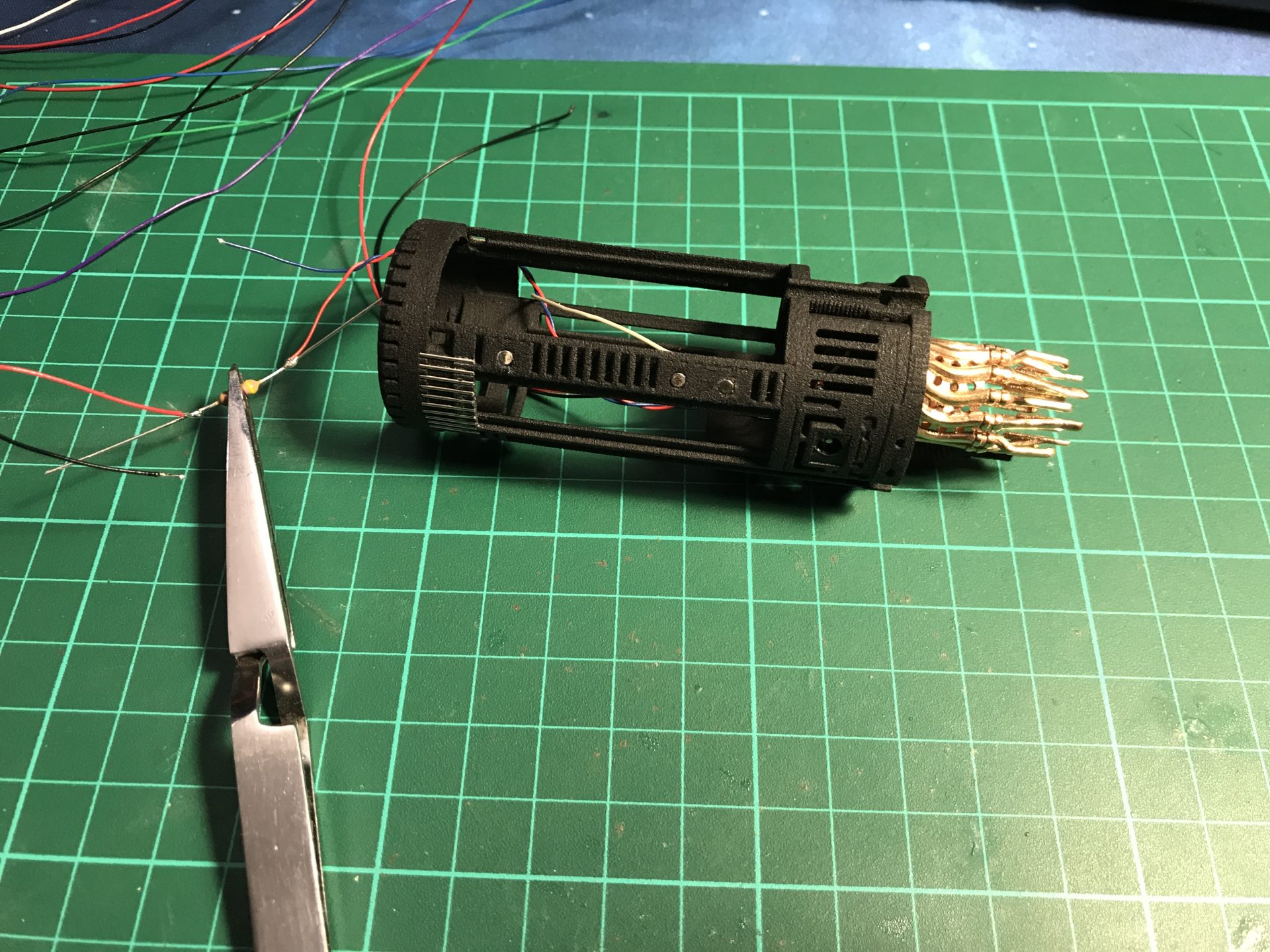 Step 18: Testing time! Add the Tube 5mmODx12.7mm over the top tube 4mmOD in order to support the custom pins male connector. Then add the custom connector and check if the assembly work properly. Once everything testing, you can remove the male connector and proceed to the next step.