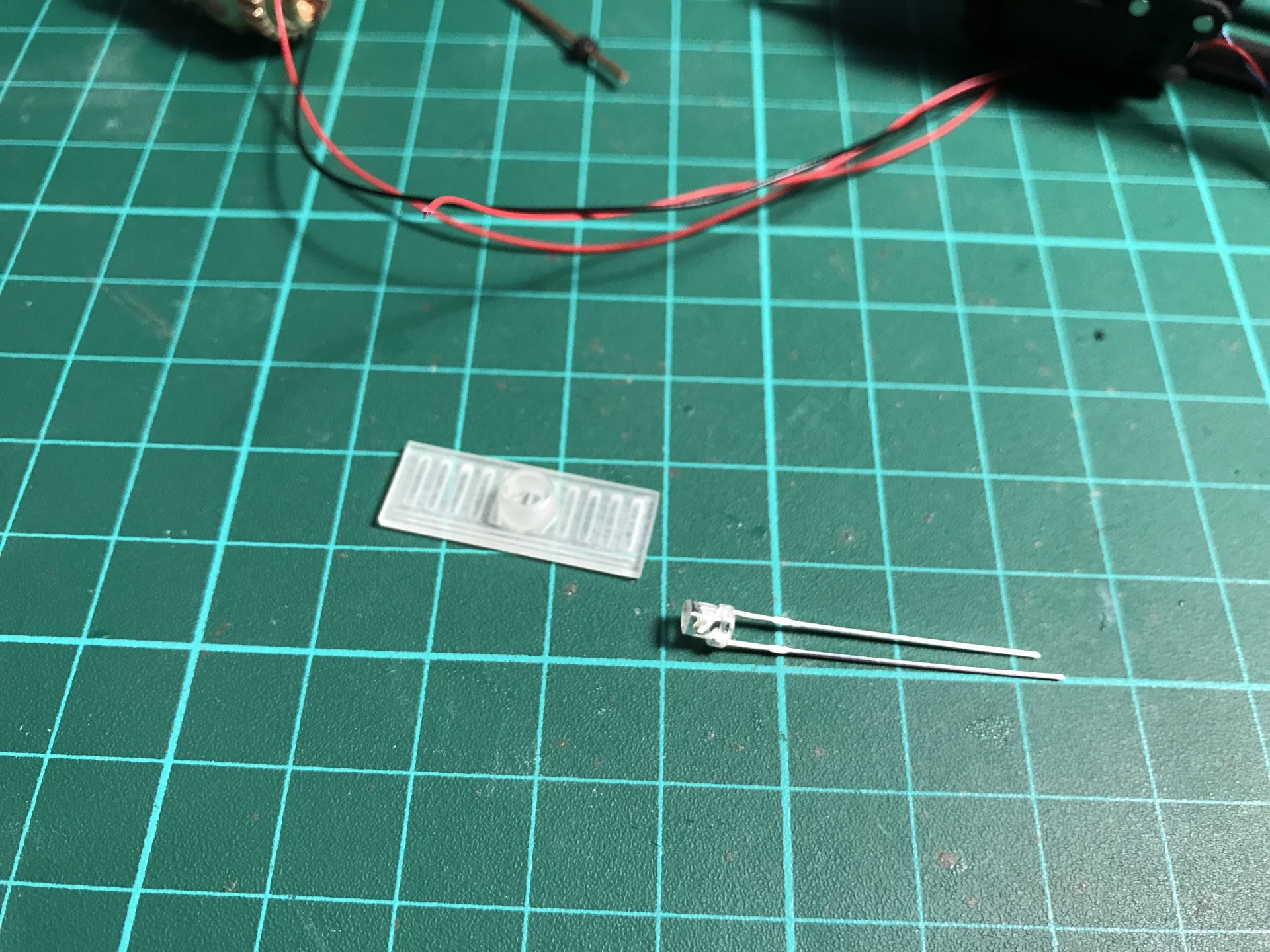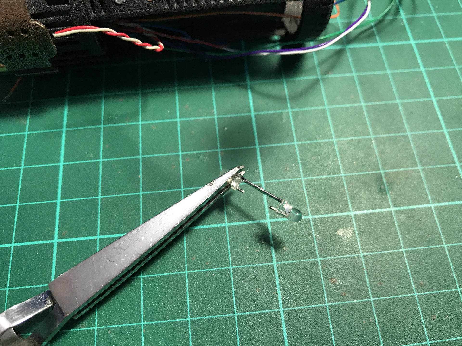 Step 34: Install the accent led plate. Sand down the 3mm led to fit snug, and solder the wires. Then insert it into its dedicated slot on the main chassis and test it.