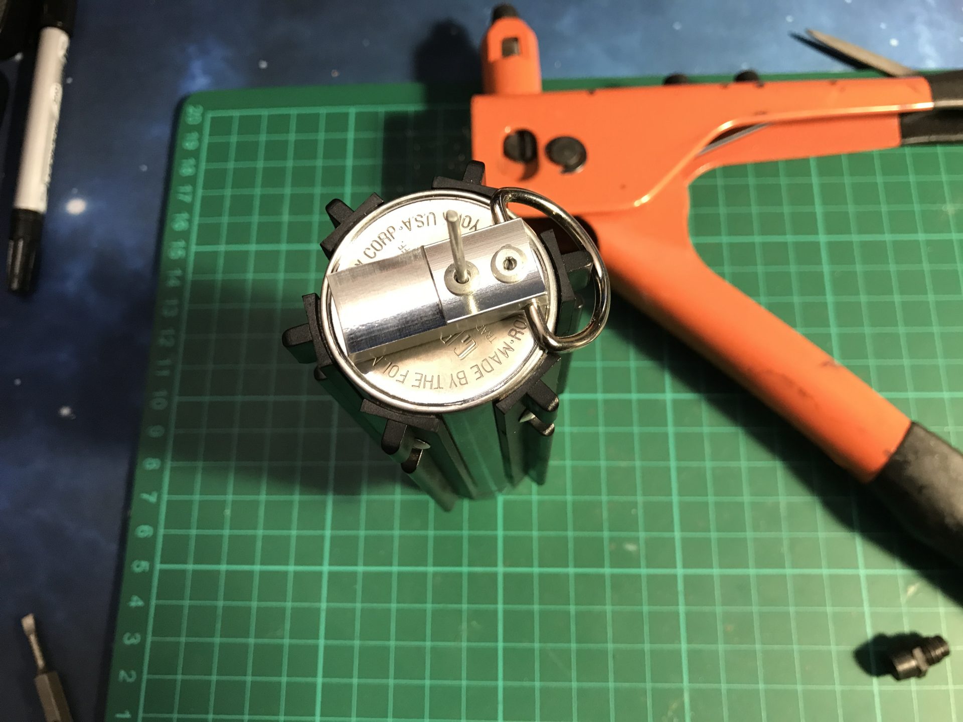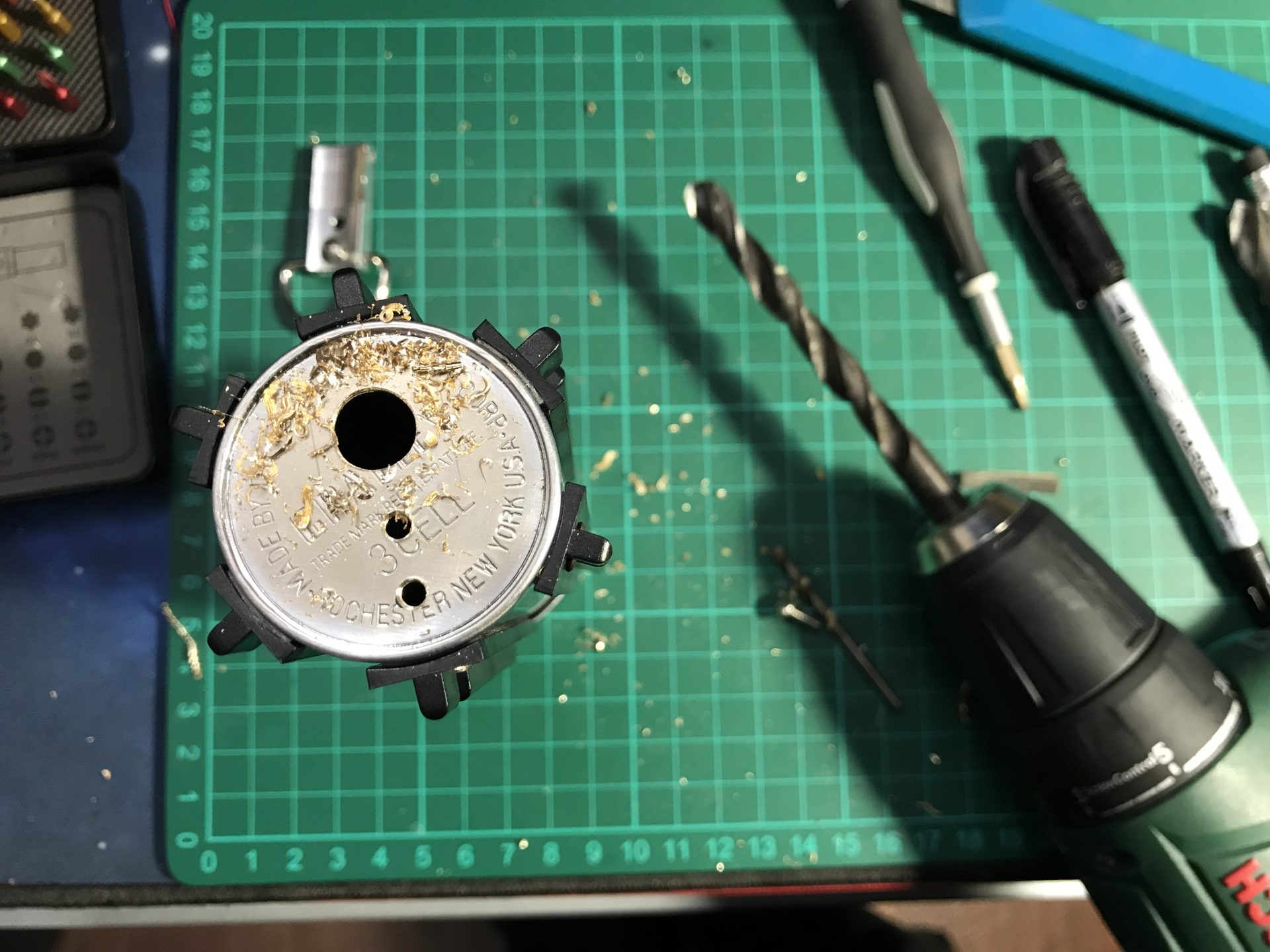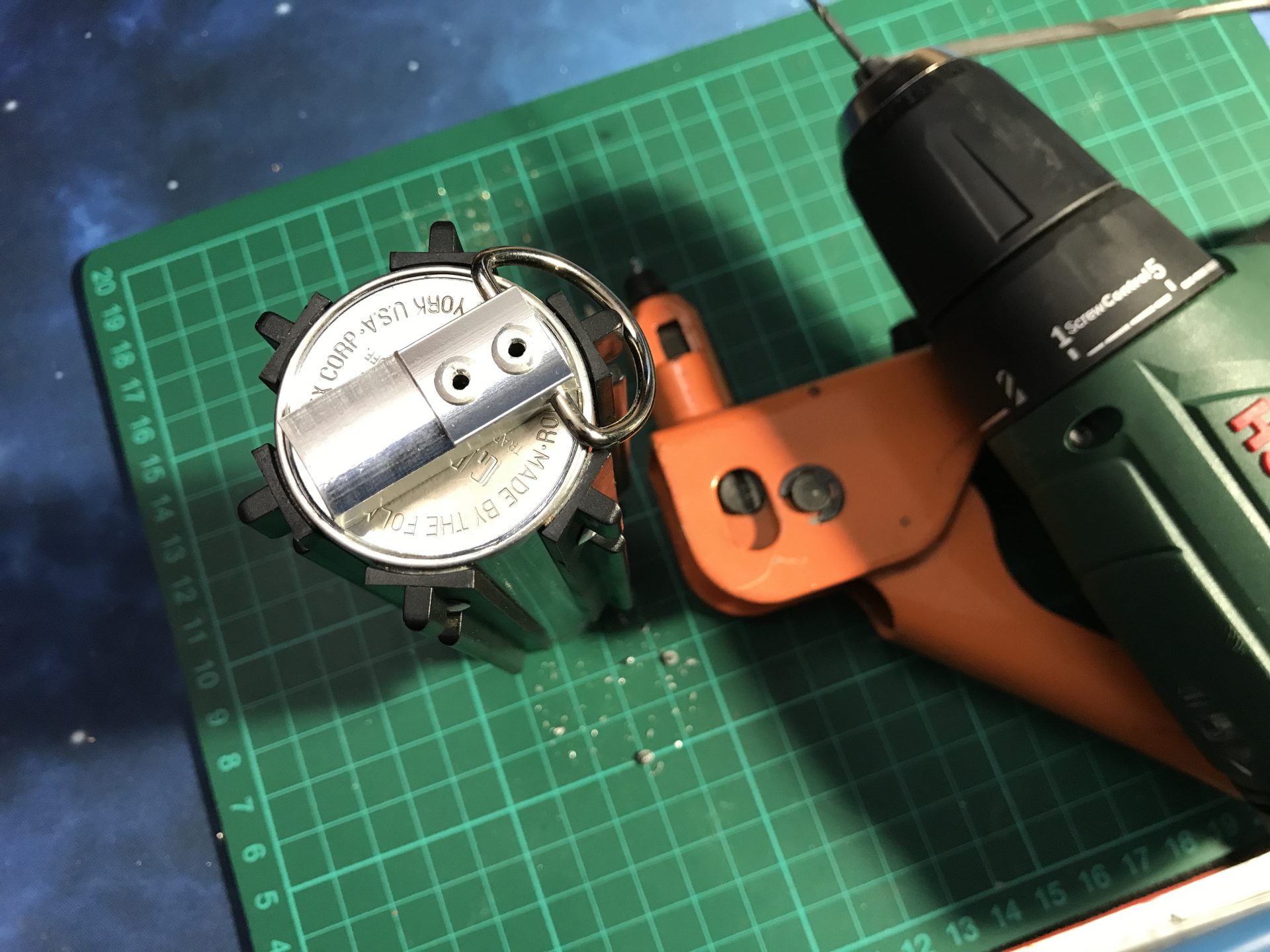 Step 45: Add sound and ring holes to you graflex bottom. Then install your D-ring or Kobolt with rivets or screws.
