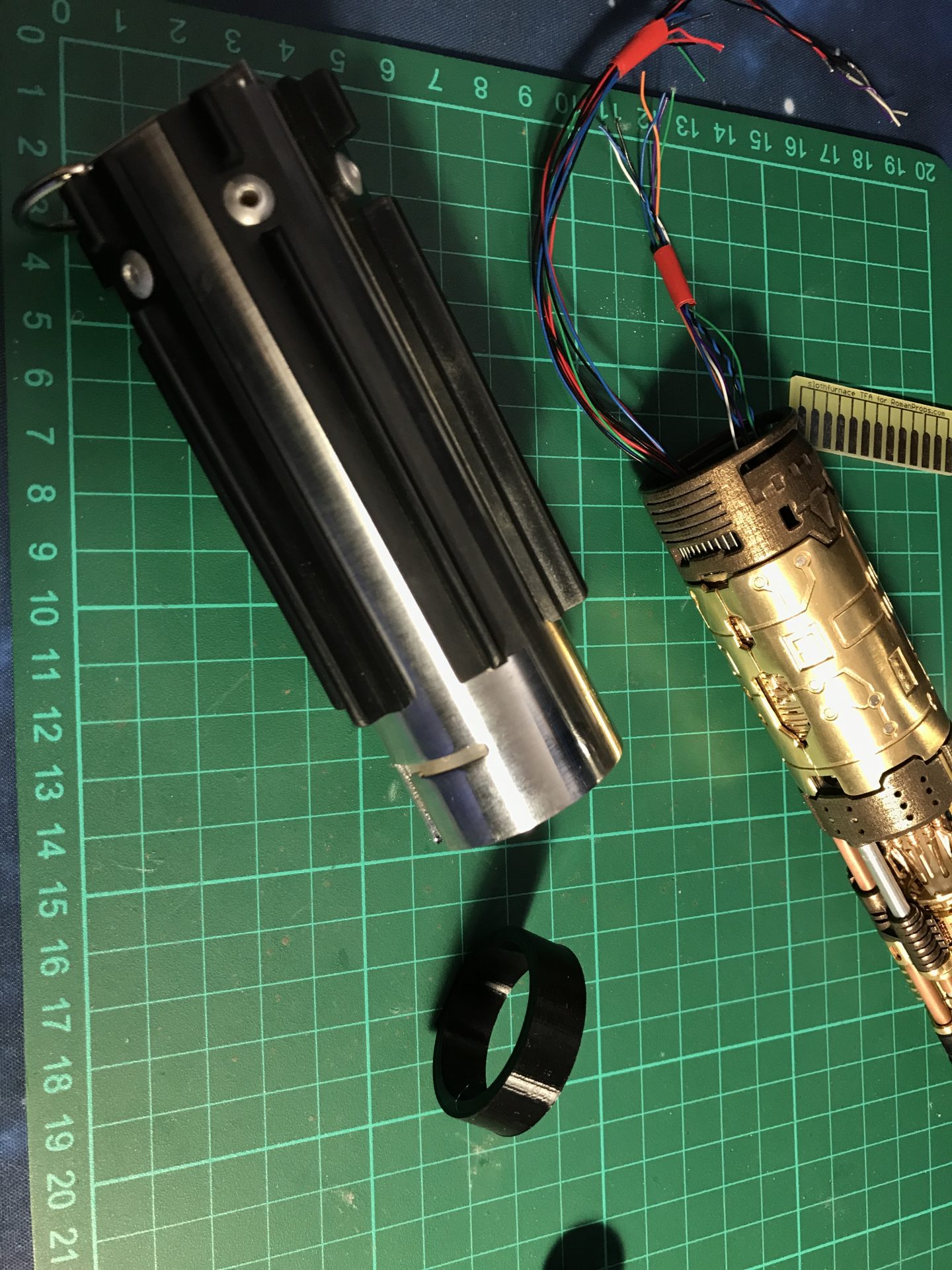 Step 46: Add the chassis spacer ring to the bottom of the graflex tube. This secure the chassis once the graflex is fully assembled (this is just to prevent chassis extension when making very strong swings, so totally optional if the hilt is display only)