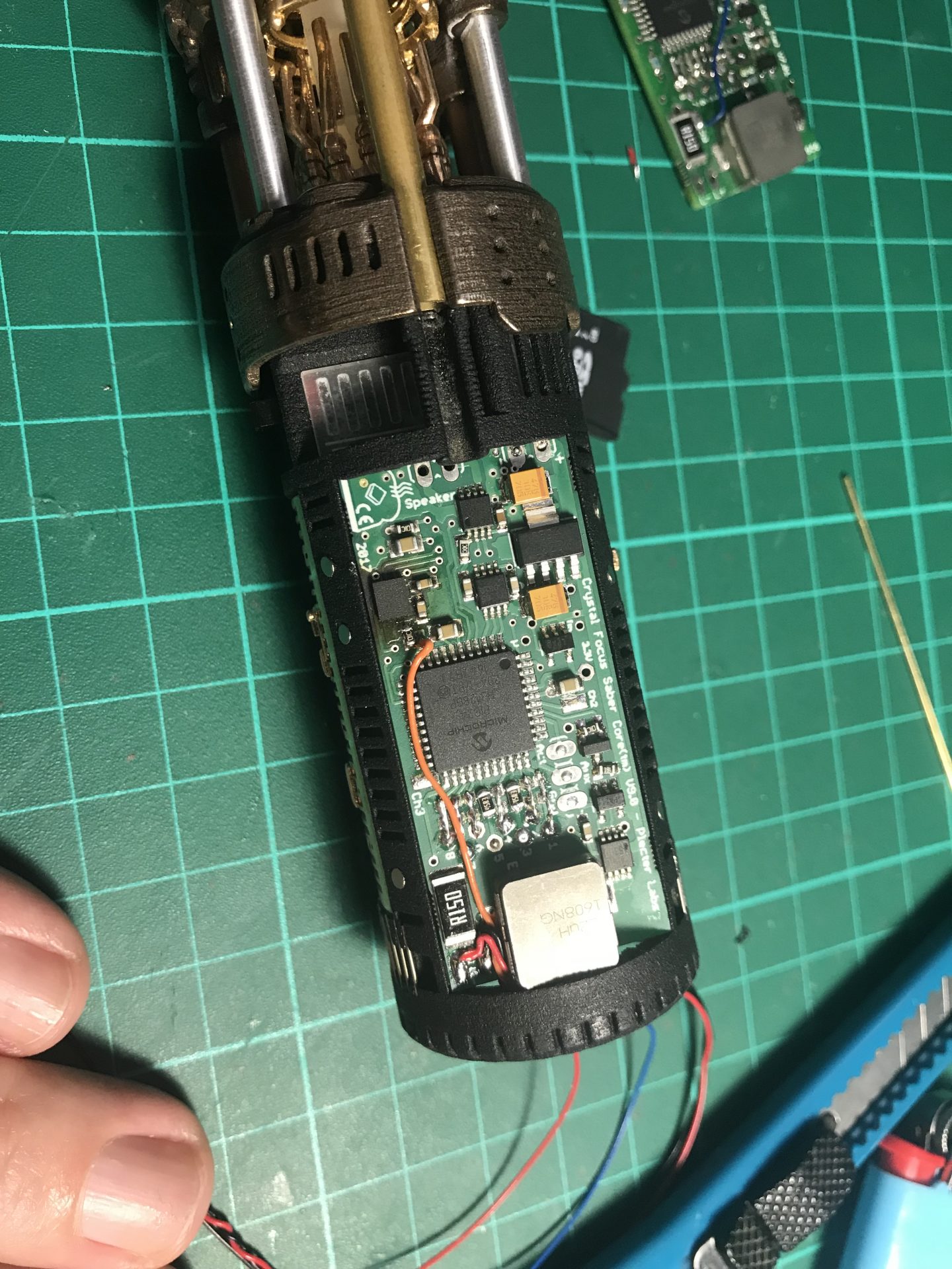 Step 40: Solder the Color Extender wires (on the side) and insert it.