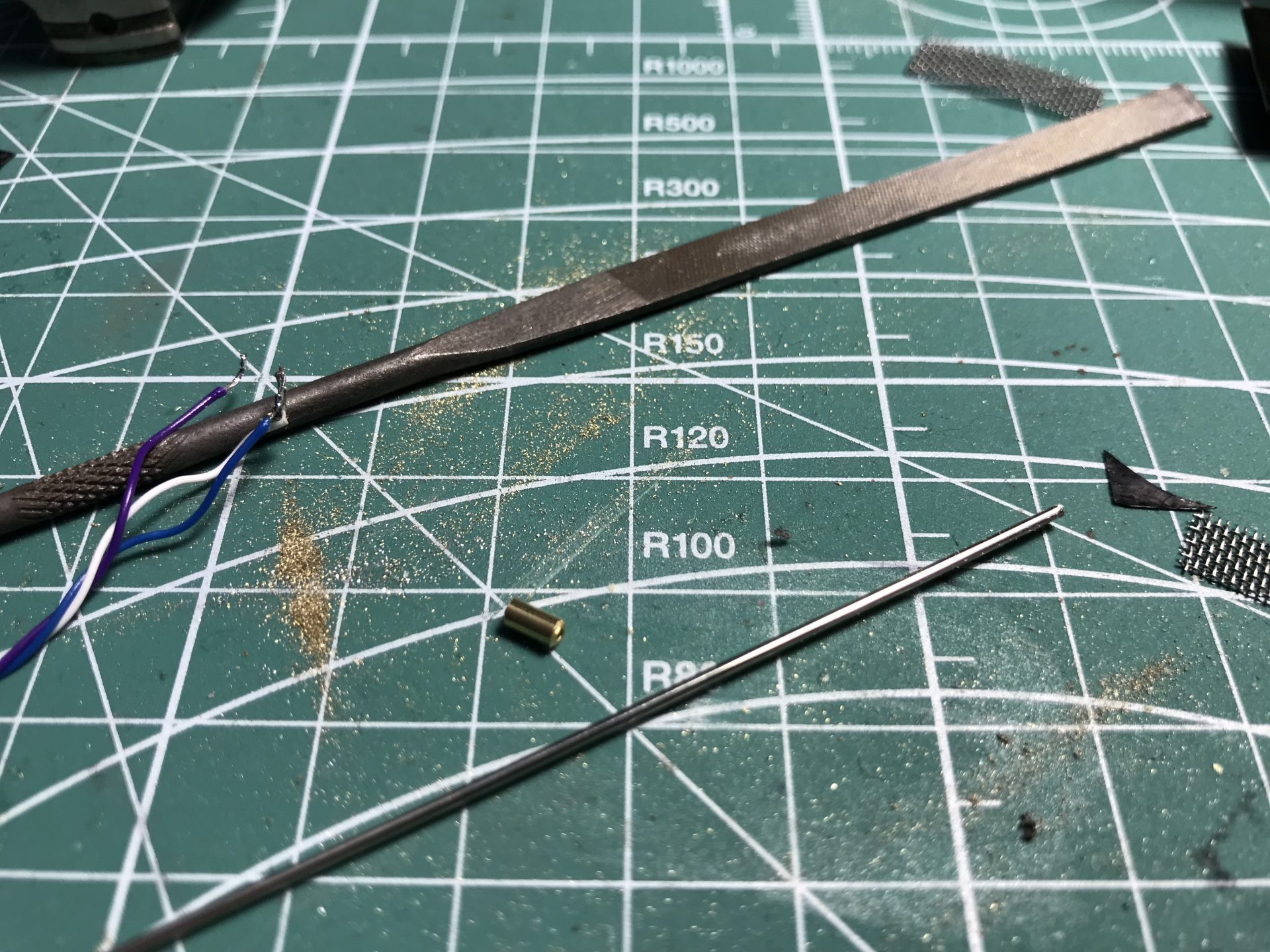 ⇒ Brass, Aluminium or Copper rods: 1mmOD (1x14mm), 1.5mmOD (2 rods to be shaped in U).