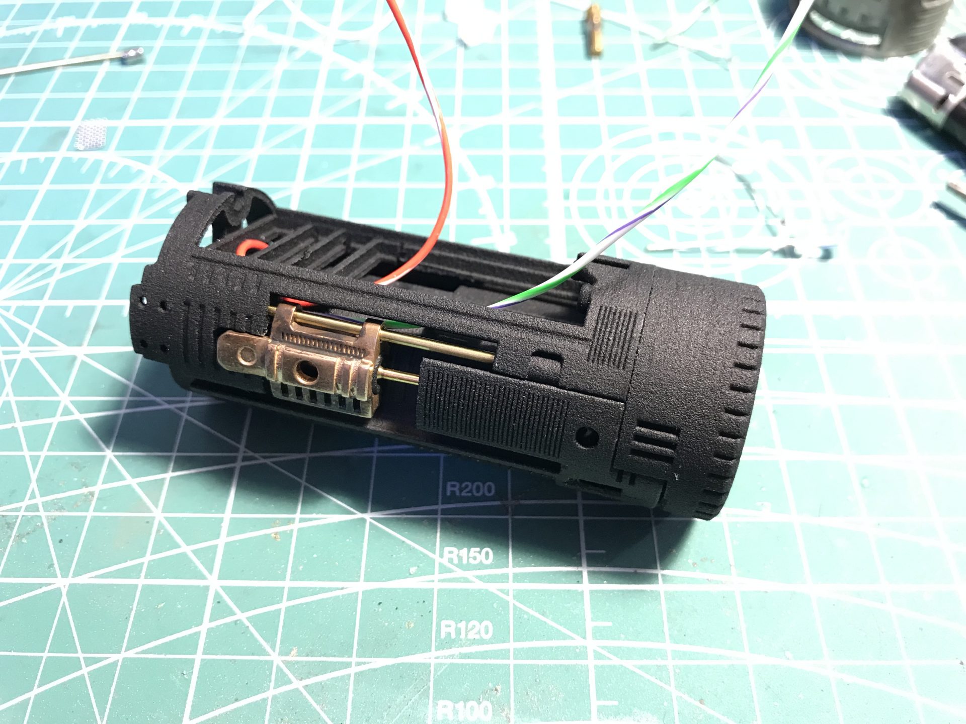 Screw in the blade holder halfway through (to then add the Neopixel connector or main led).
