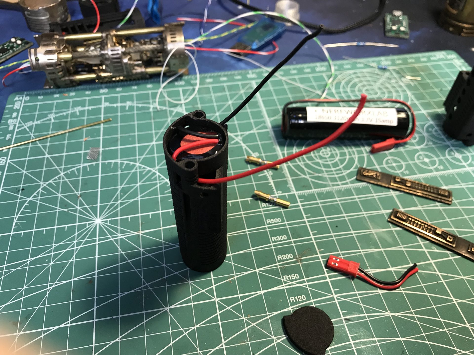 Step 16: Test the assembly. It is important to check that the switch is behaving properly, meaning that it stays in place when inserted into the battery pack, or stay disconnect. Depending on the wire used, it can create pressure and push the switch to ward the battery. if this happens, the lip at the back of the switch can be bent a bit outward, so that it will friction fit with part 13 and keep power off.