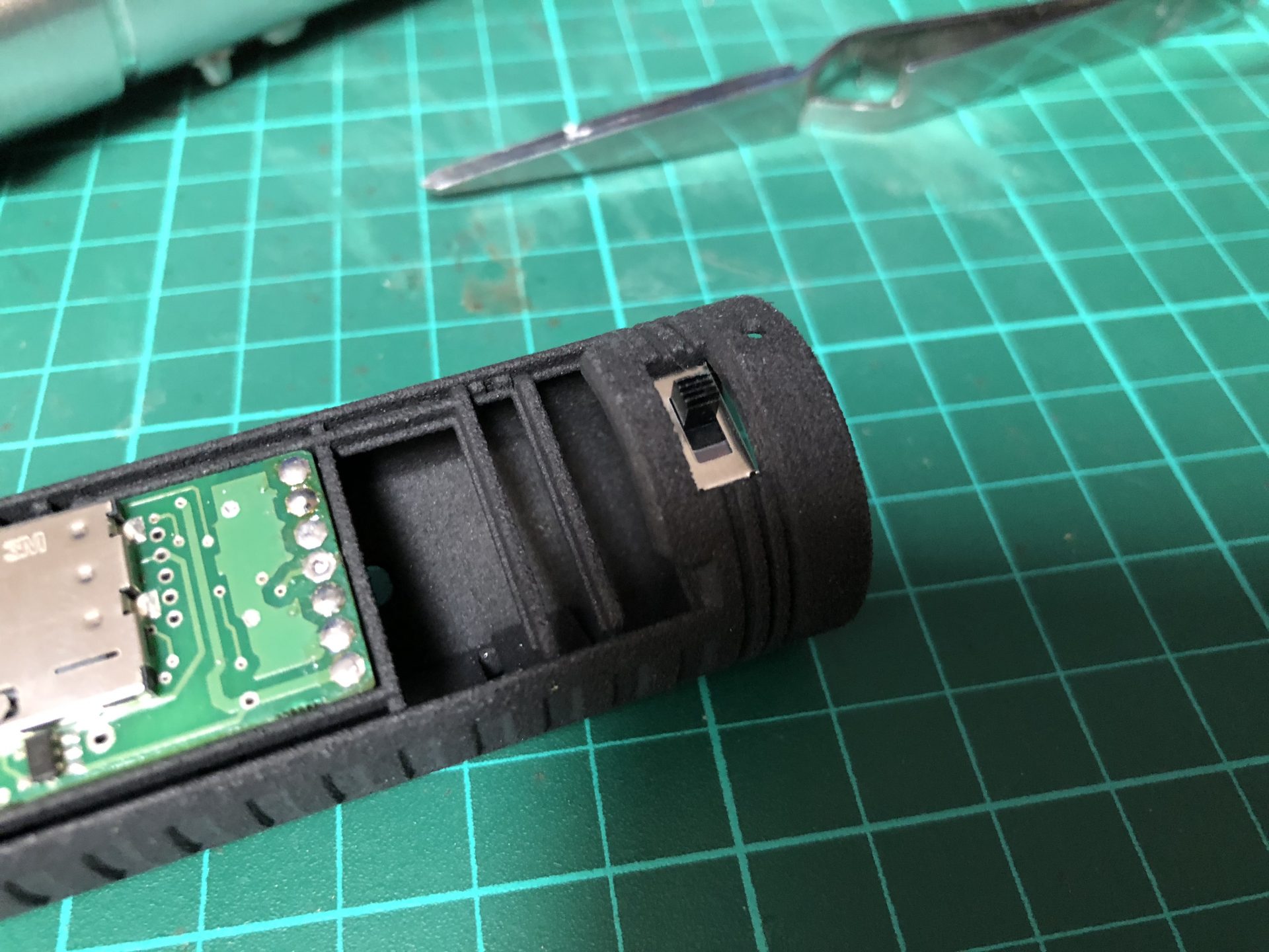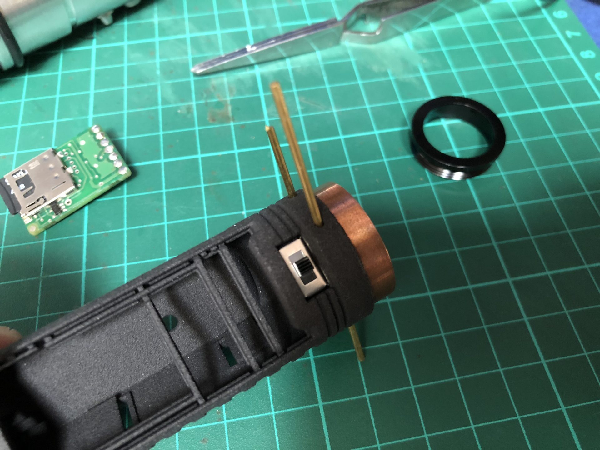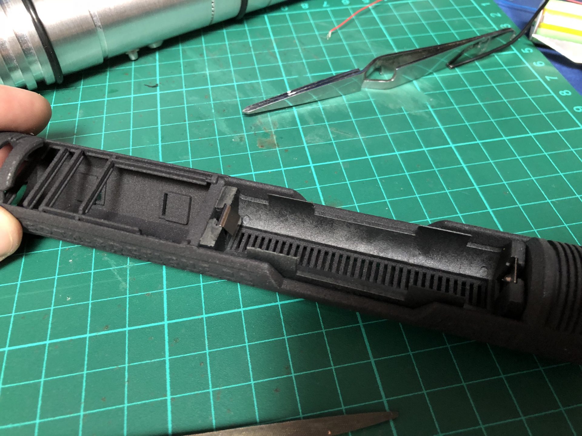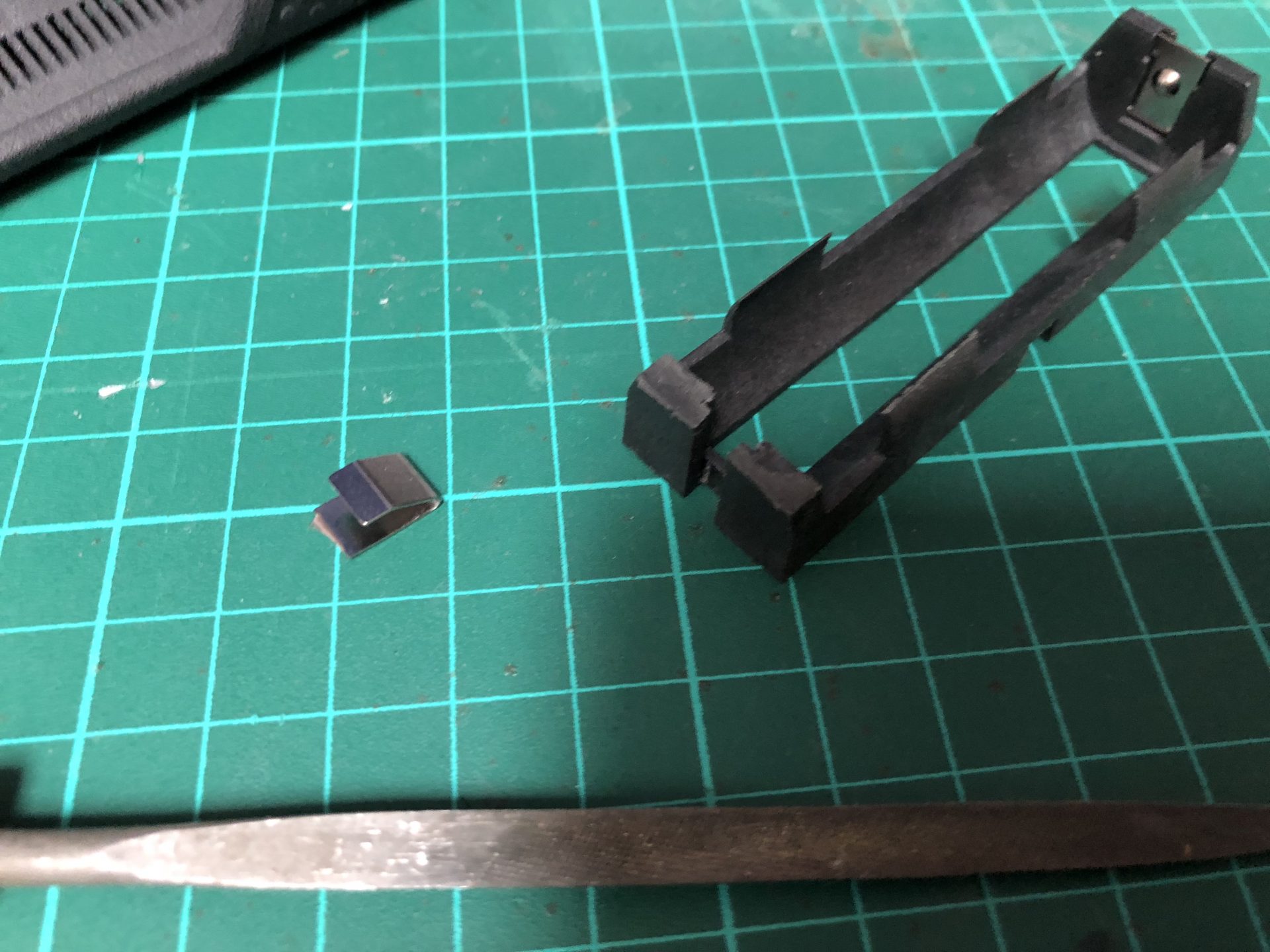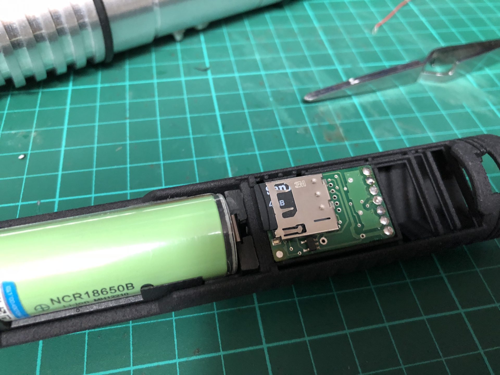 Then, the negative battery side of the holder needs to be sanded (approx 3mm down, remove and cut the metal part as well). This is to allow SD card access.