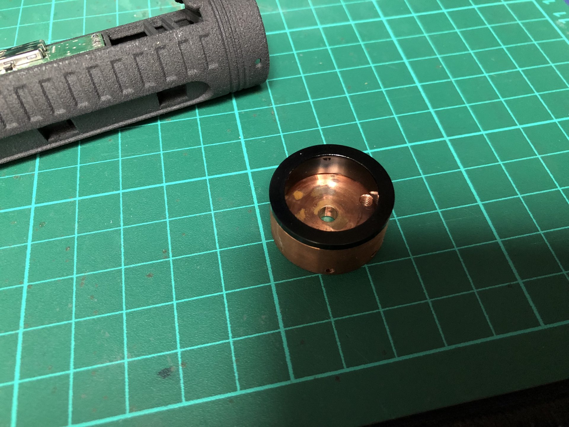 The other 2 thumb screws (toward the middle of the staff) might go a bit too deep in the hilt (especially if tighten to the max) for the chassis to slide in properly. You can either use them a chassis retention screw (not really needed as the chassis is already locked by the emitter), or just sand them a bit until the chassis slides in and out fine.