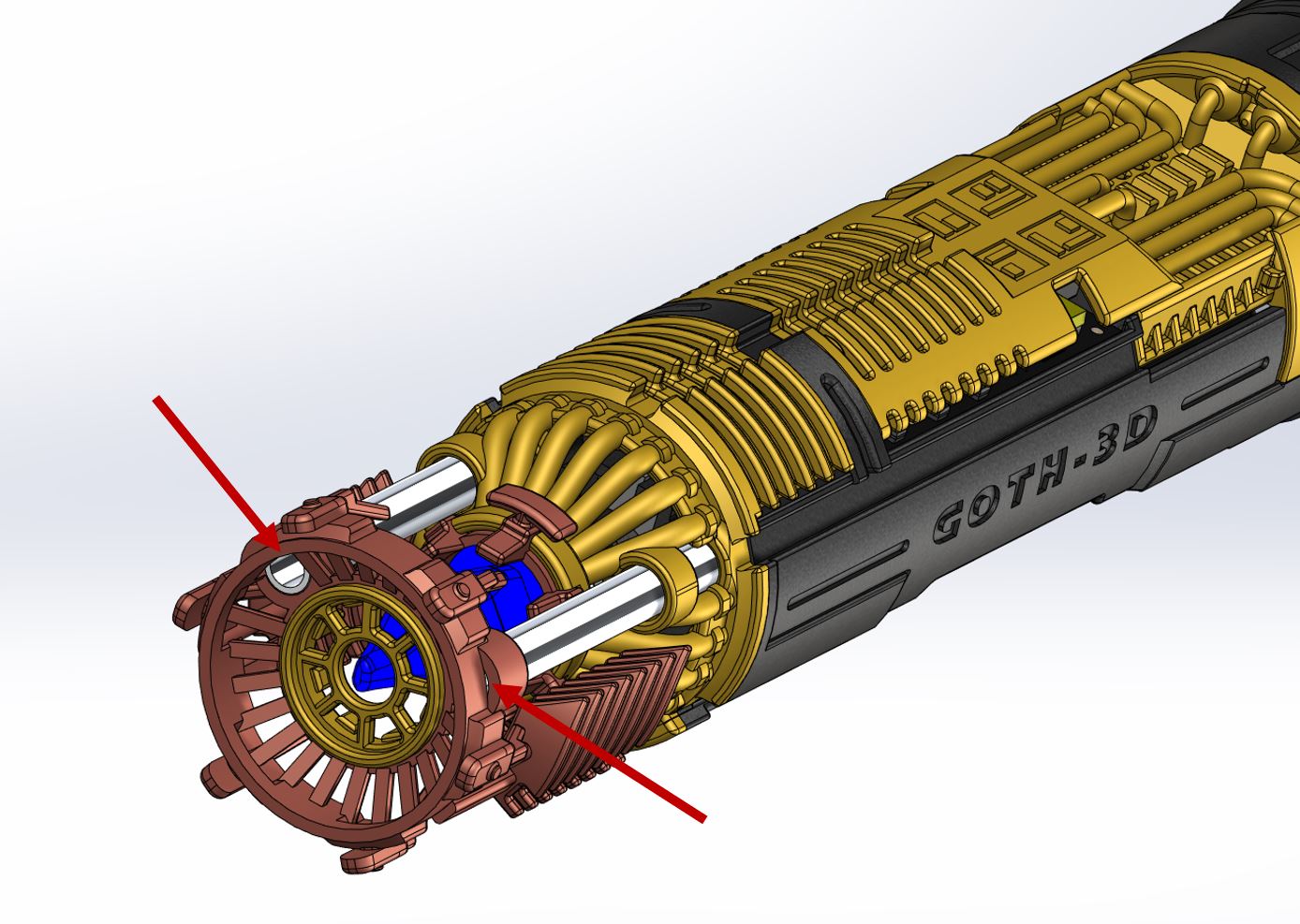 Glue the speaker, then glue the cap making sure it’s aligned properly. Test in the hilt to verify alignment.