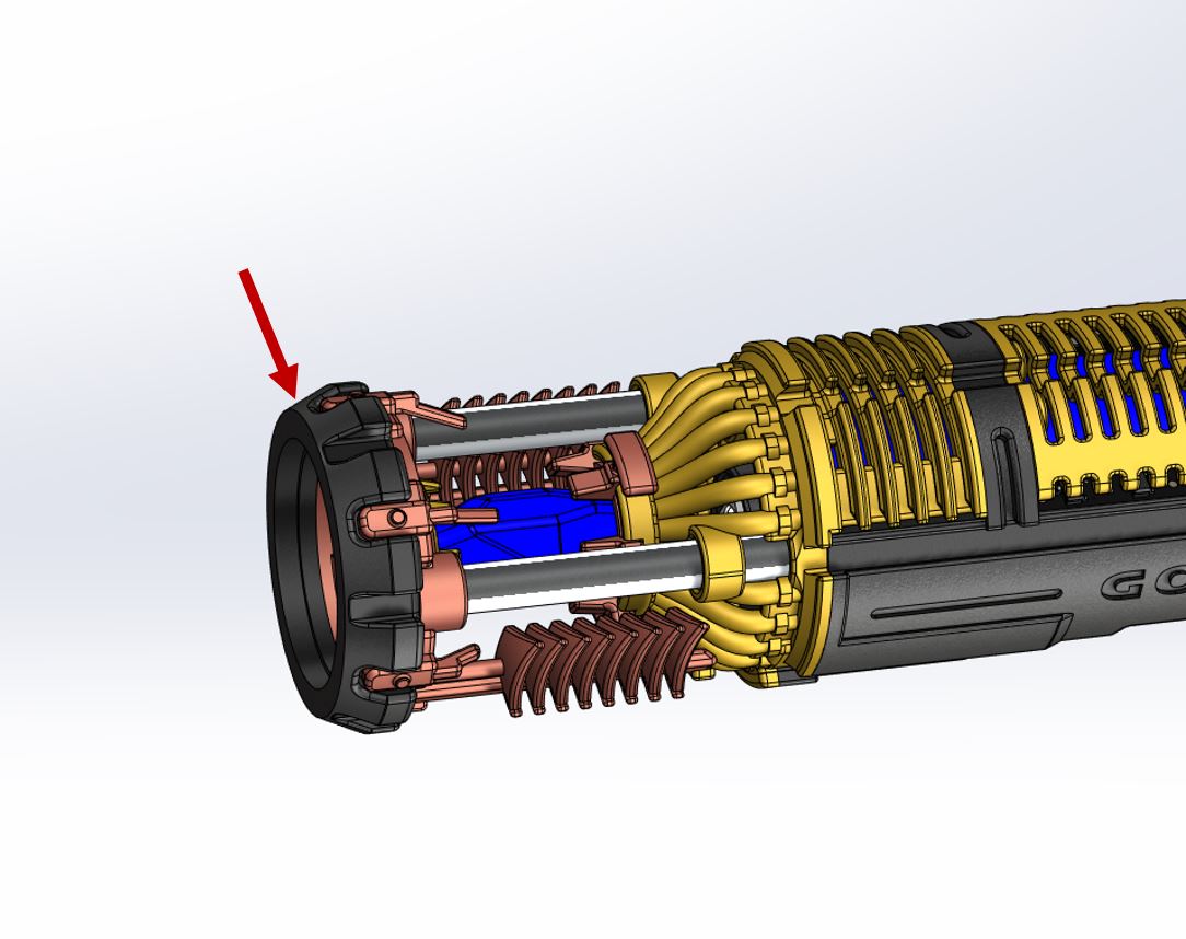 Then insert it inside the hilt. Take the switch wires out and solder them on the switch. Screw the switch to lock and secure the assembly.