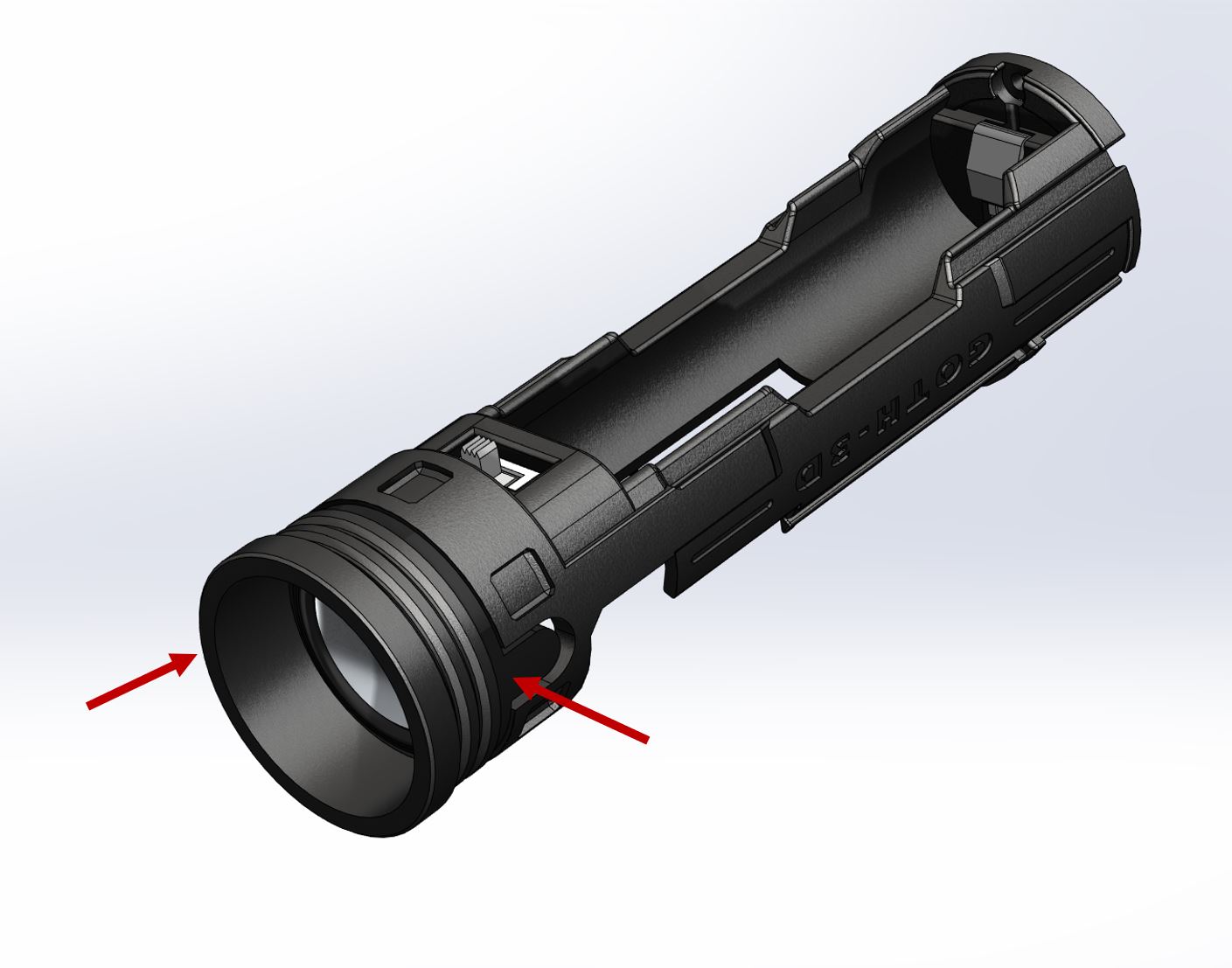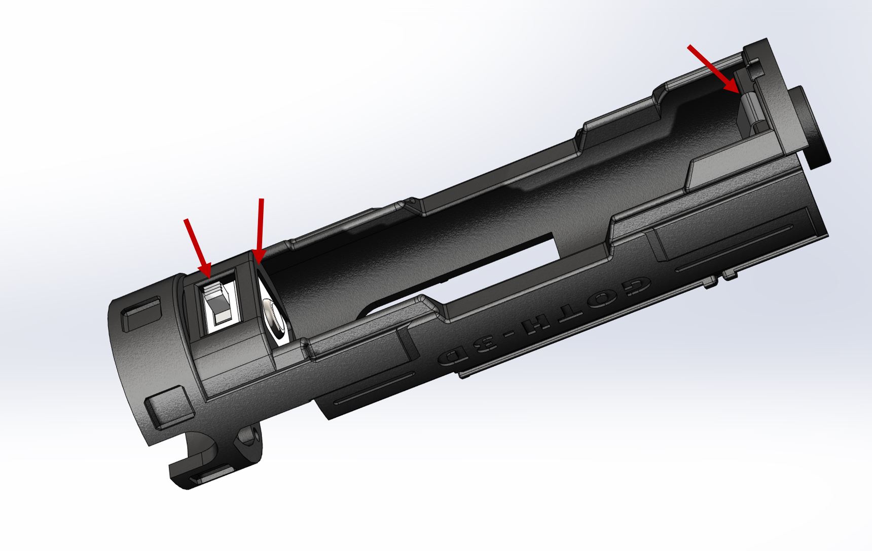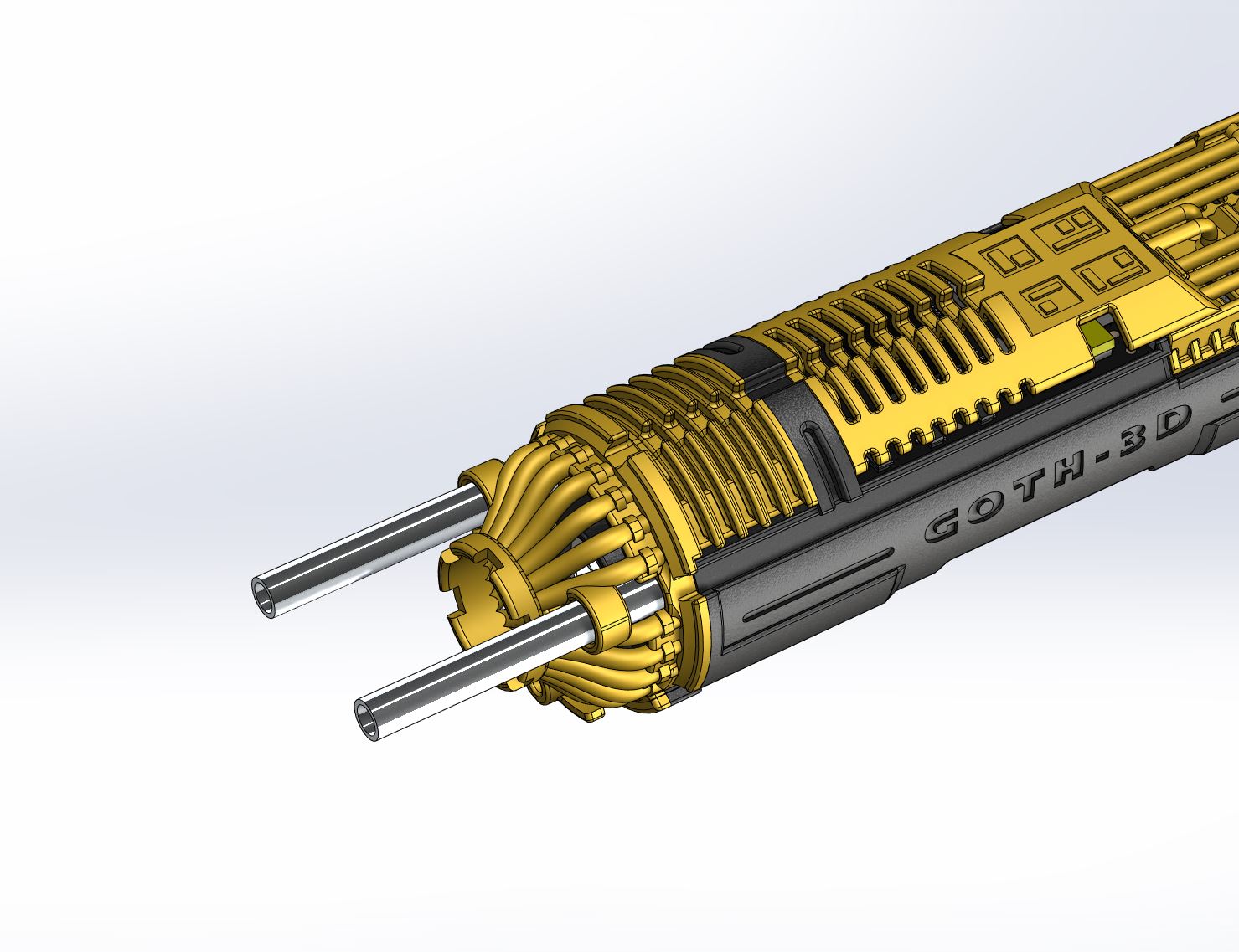 Fully removable chassis core, with Crystal Chamber and a removable battery for Neopixel install.