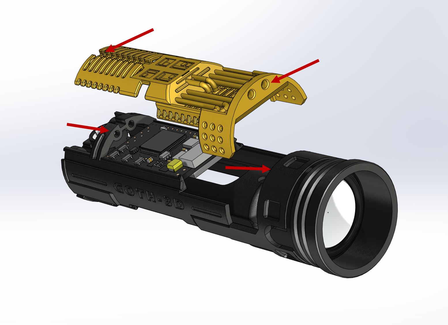 Step 13: Wire the pixel with the one on the chassis, then assemble the crystal chamber onto the main chassis. Glue the the tubes on part 2.