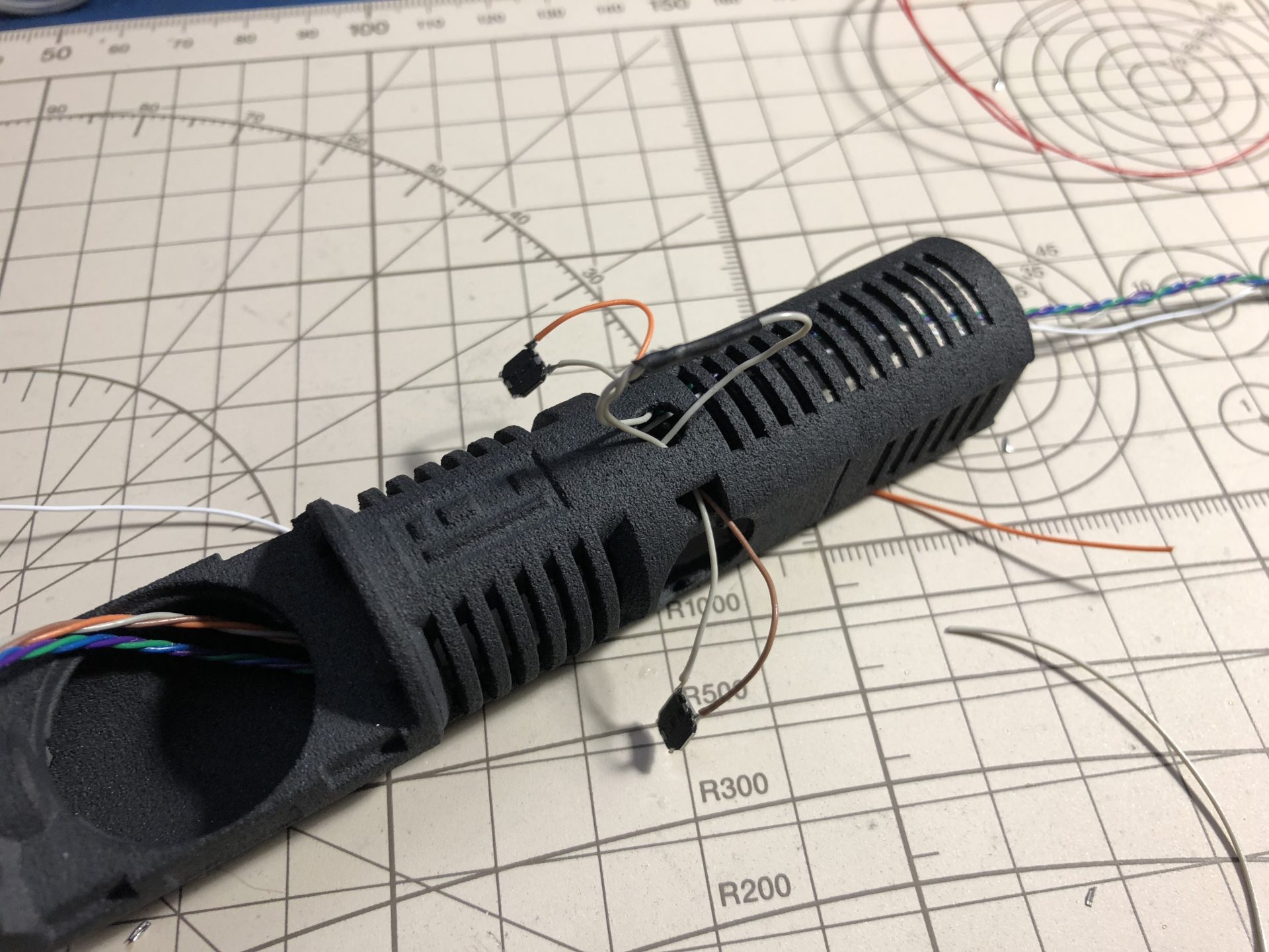 (If there isn’t enough space, the chassis parts can be modded for a bigger wire hole and wire sleeves could be used instead of tubes).