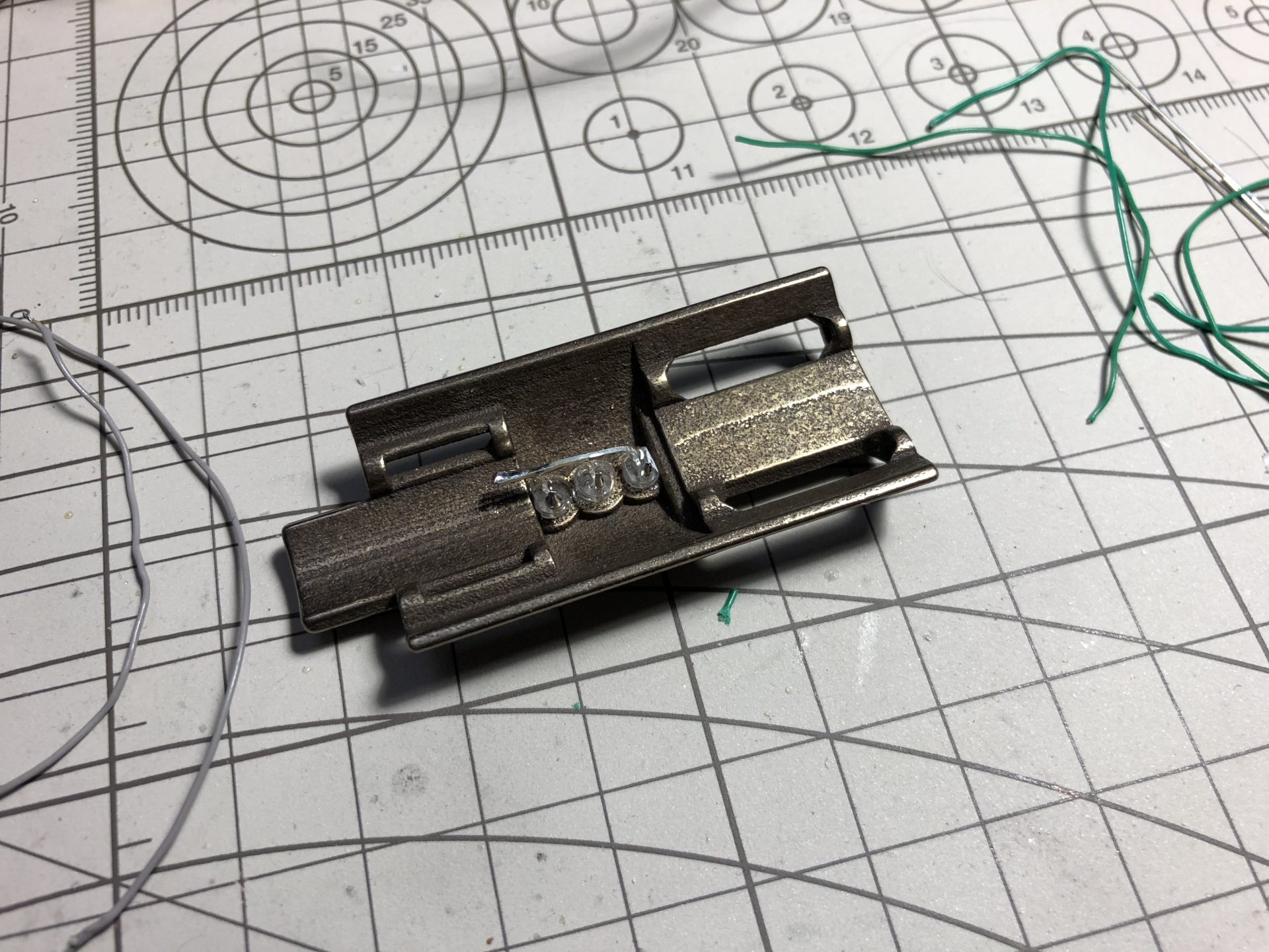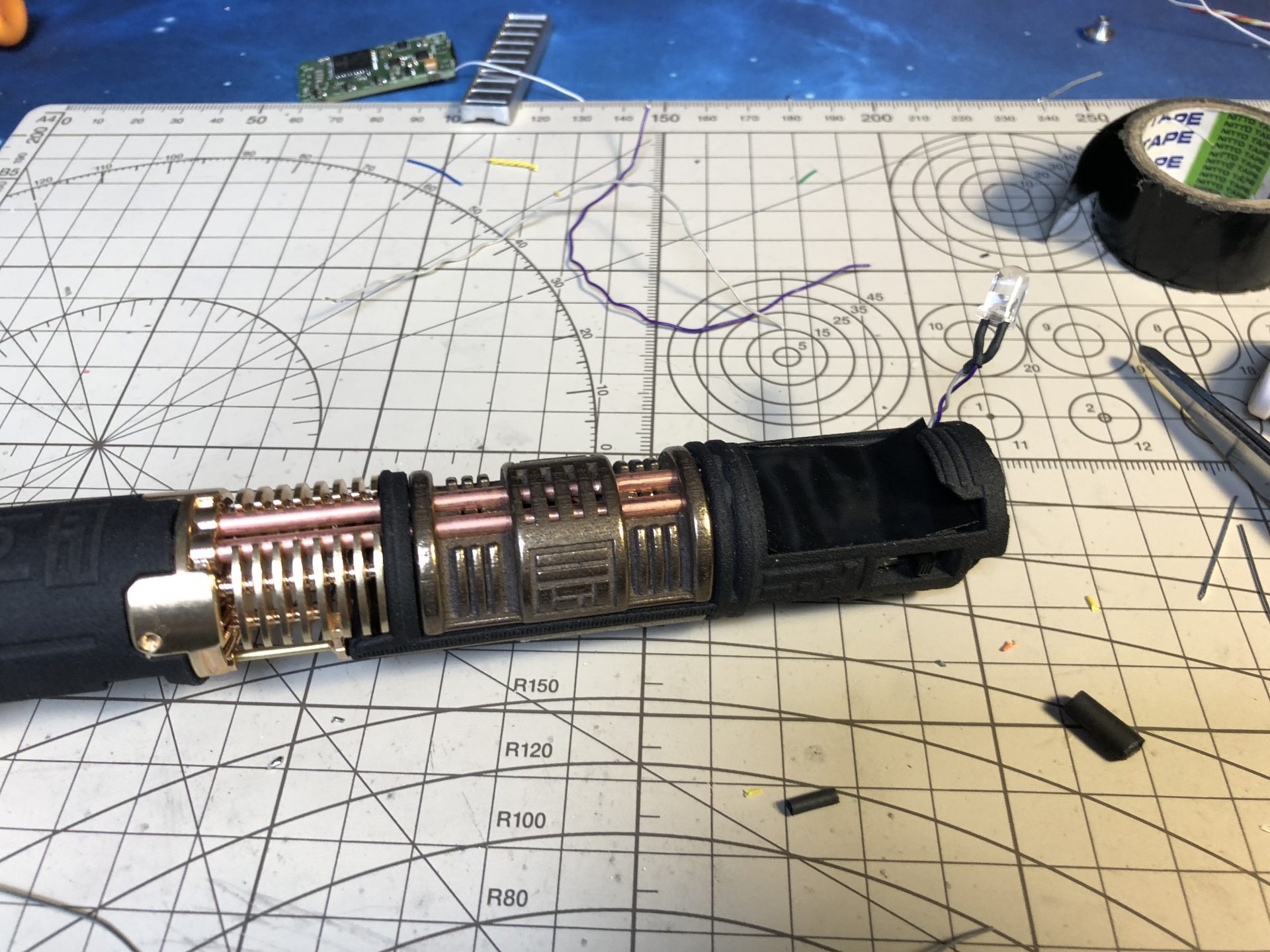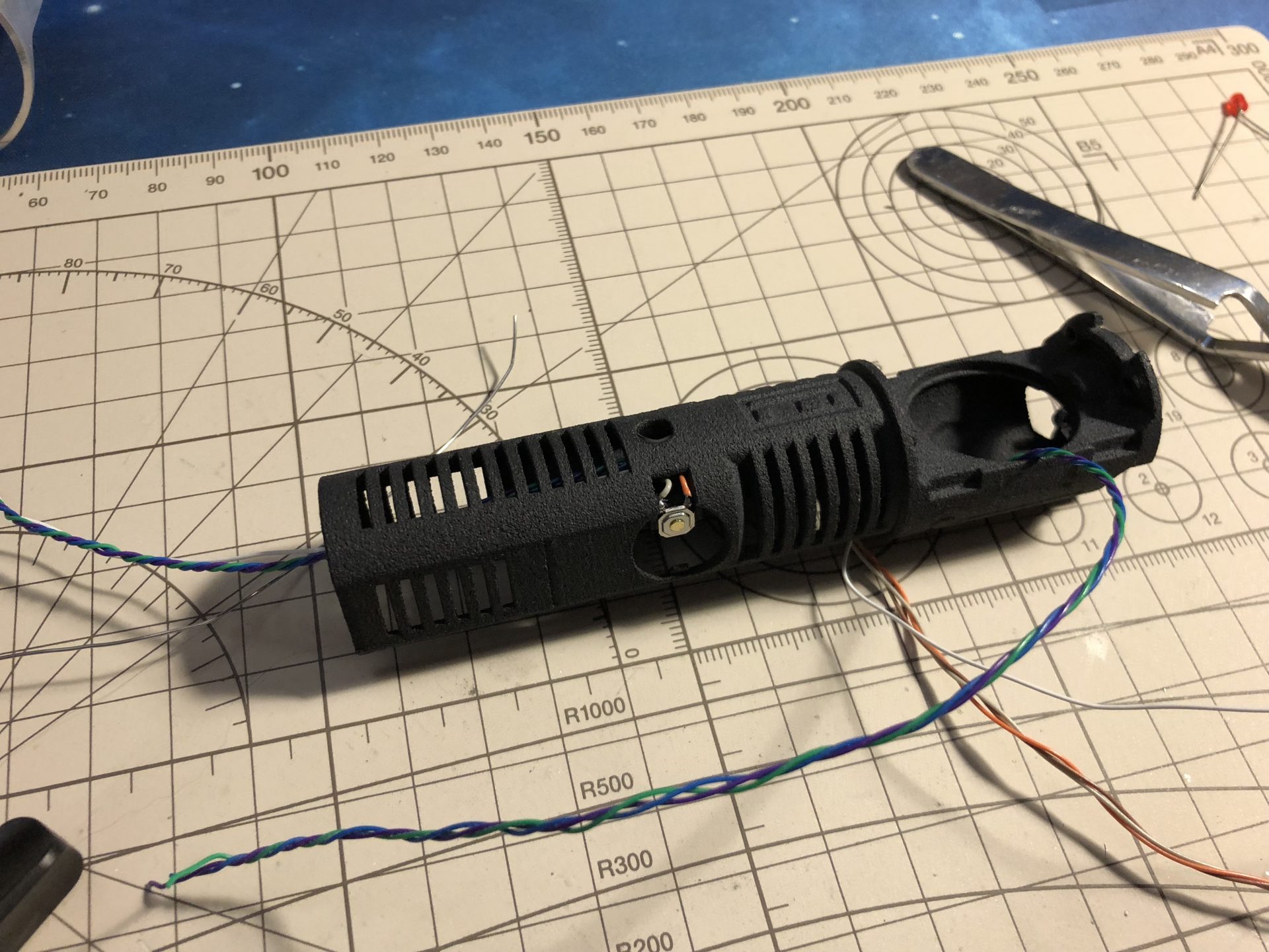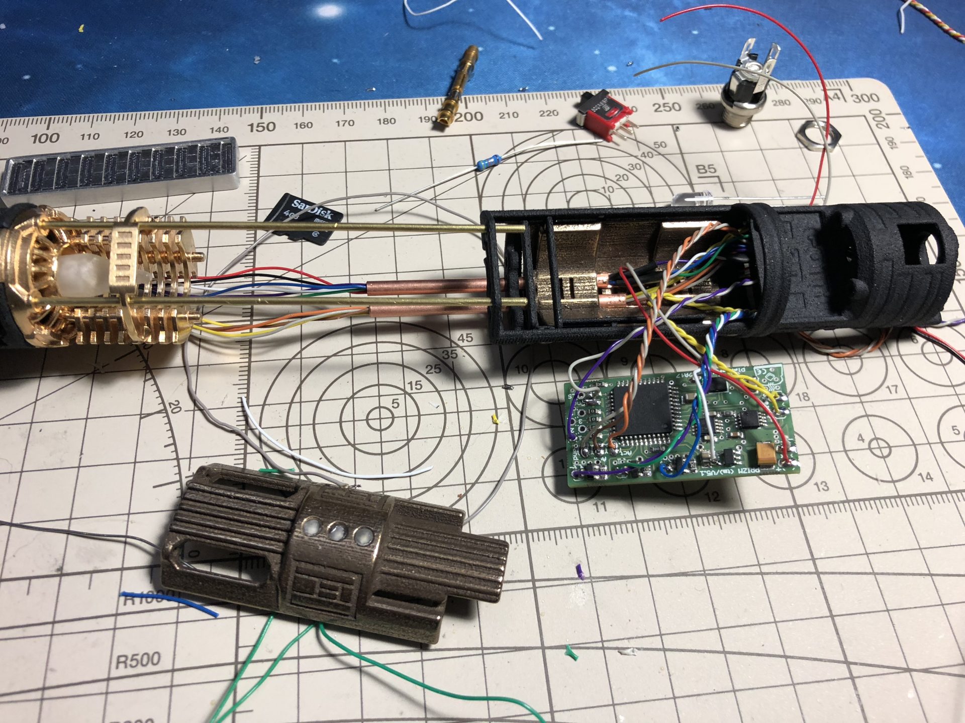 To limit the number of wires going through the tubes, the crystal chamber LED wires are wired in parallel of the main led under the speaker.