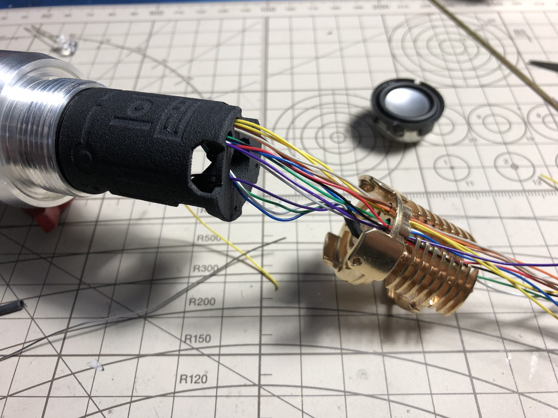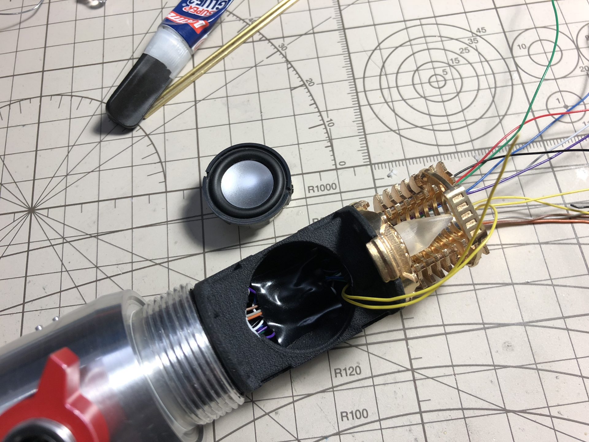 Wires and install the speaker in its slot (bits of super glue are used to secure the speaker in).