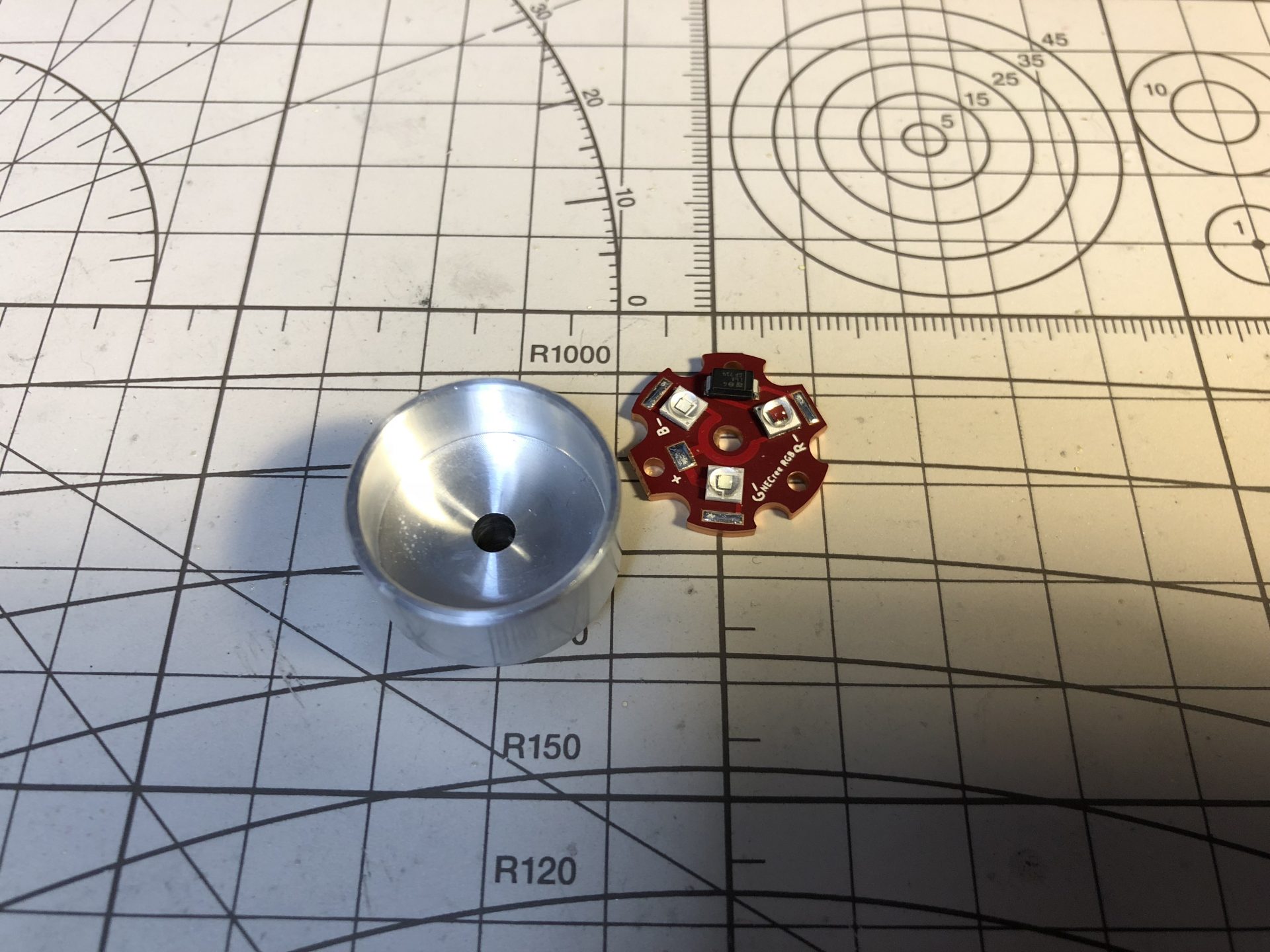 Sand the led and optic surroundings to fit properly into the heatsink. Make sure everything is tested ok.
