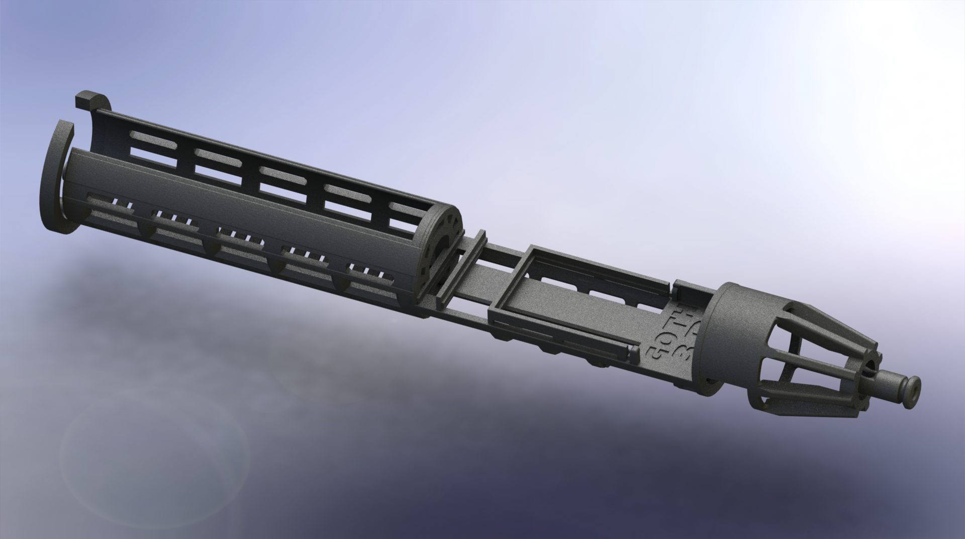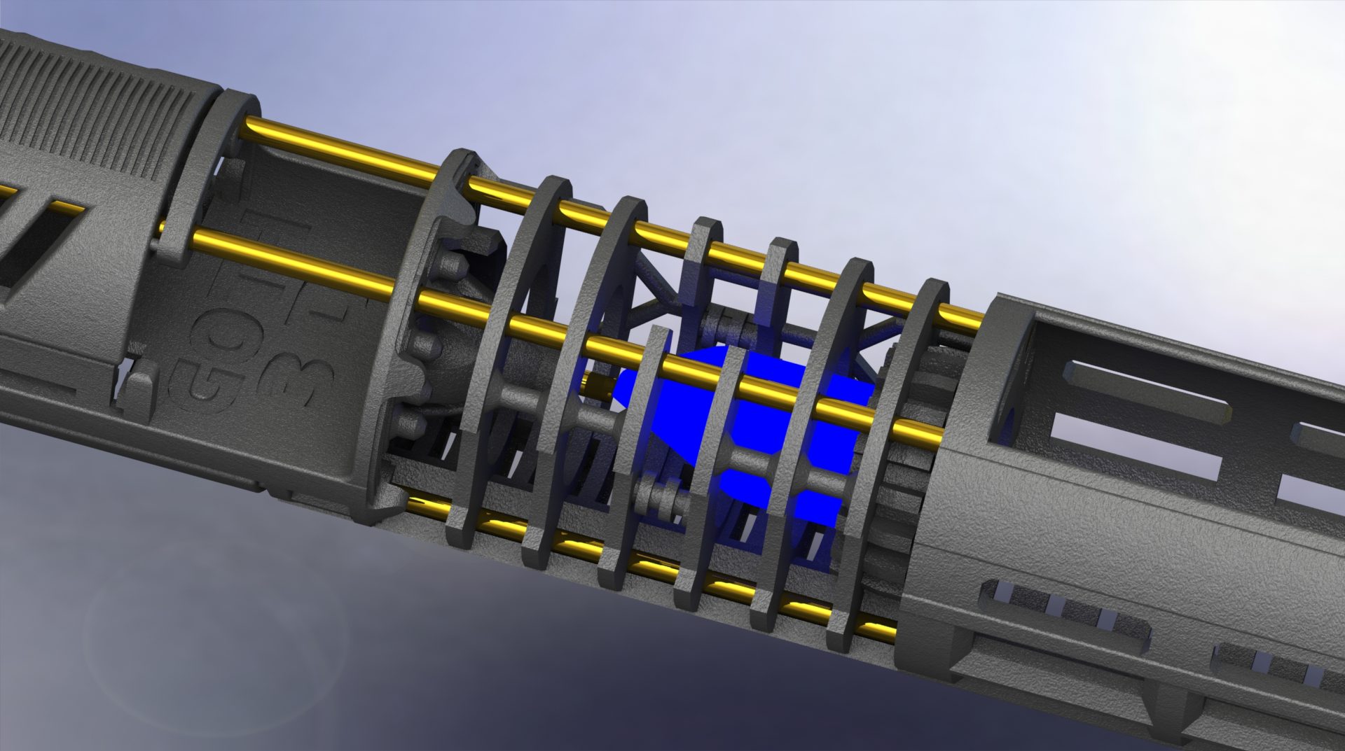 Variant 1 uses the speaker / recharge cone design, to access the recharge port / kill key by unscrewing the pommel.