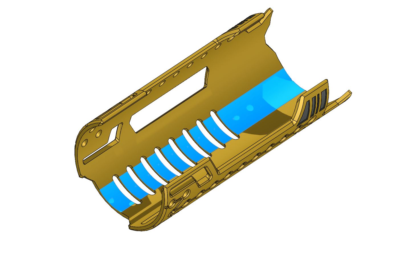 – Another small adjustment is required on the cover, to allow better tolerance for the battery to fit under its cover. Sand the area shown below in blue with a Dremel sand drum, then polish the area with a Dremel brush.